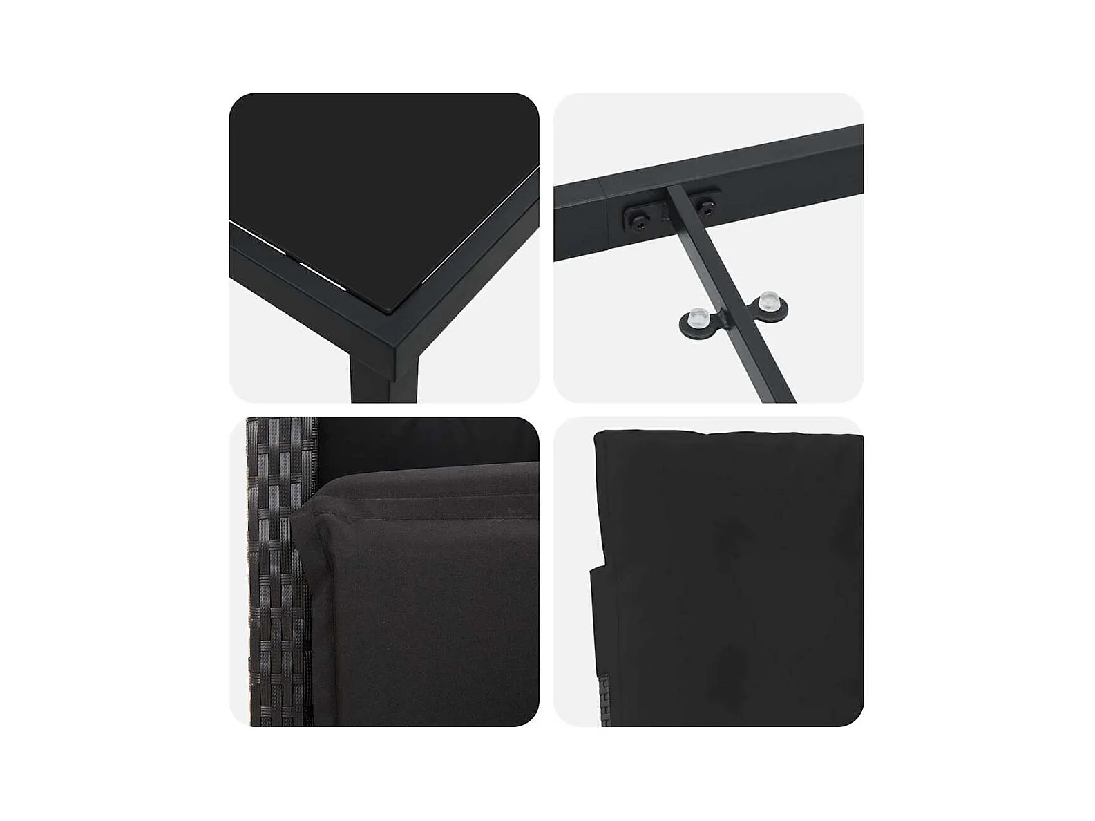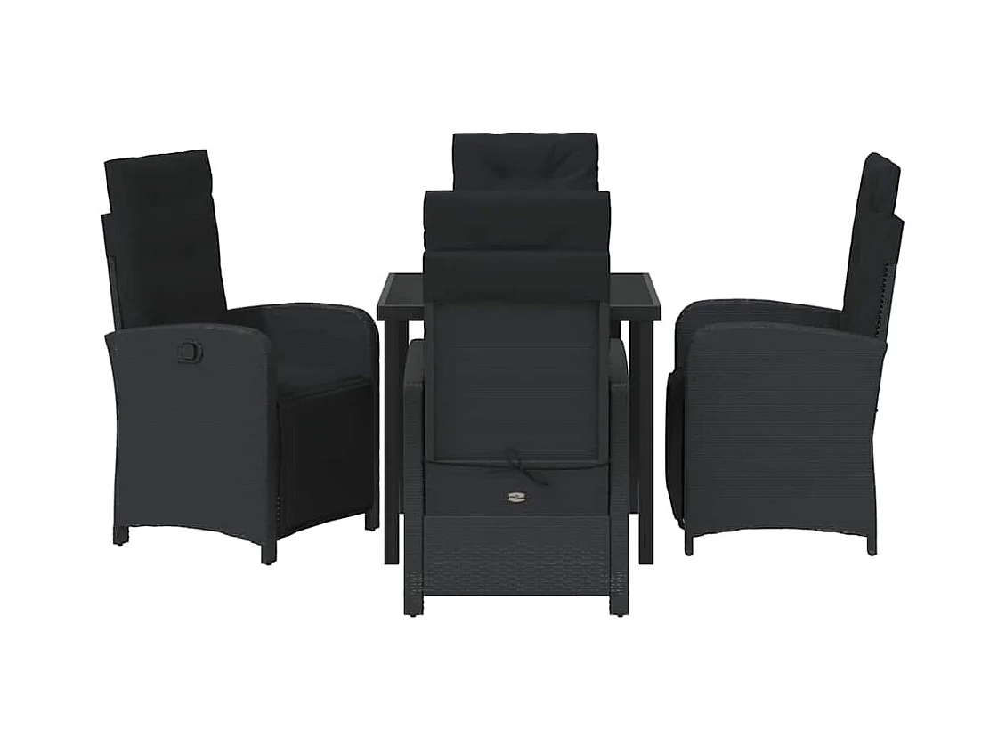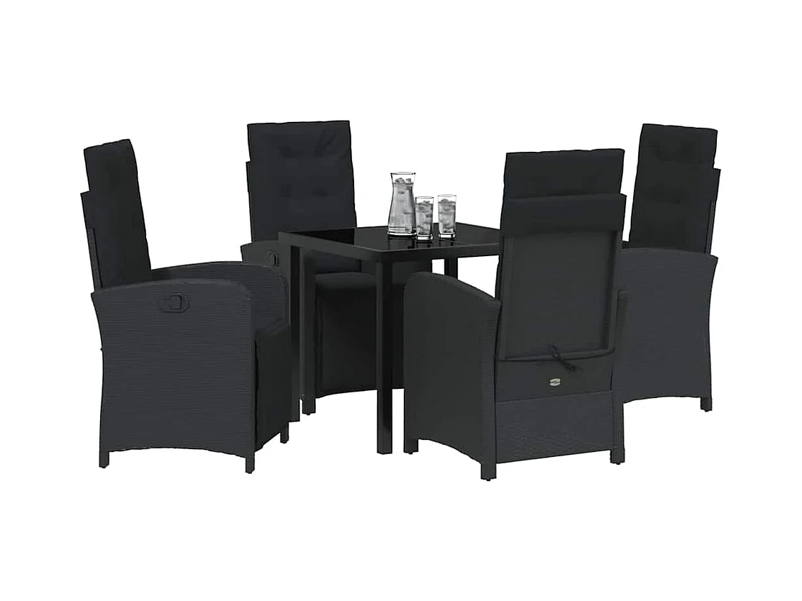 Set da pranzo da giardino 5 pezzi con cuscini in polyrattan nero
