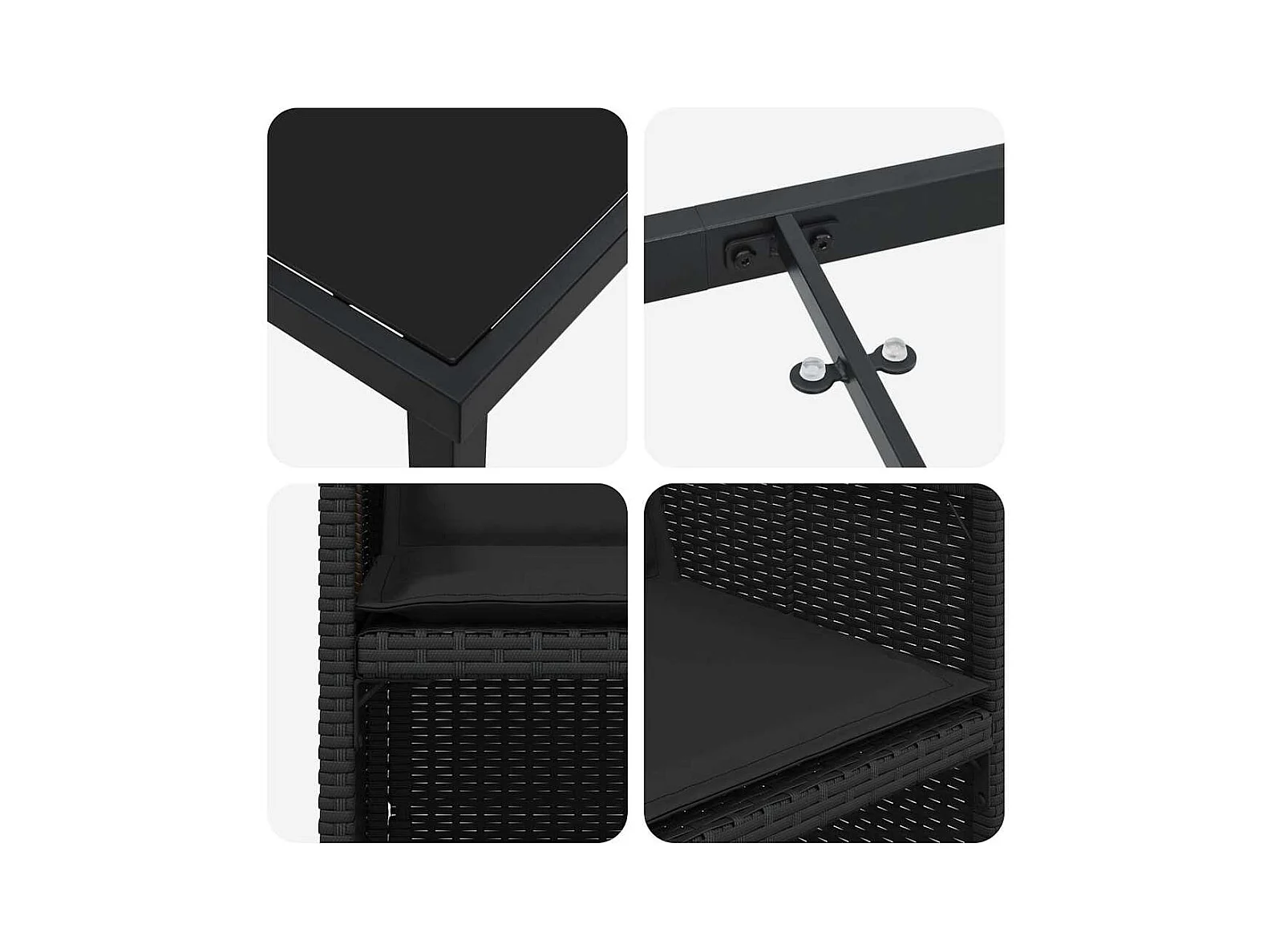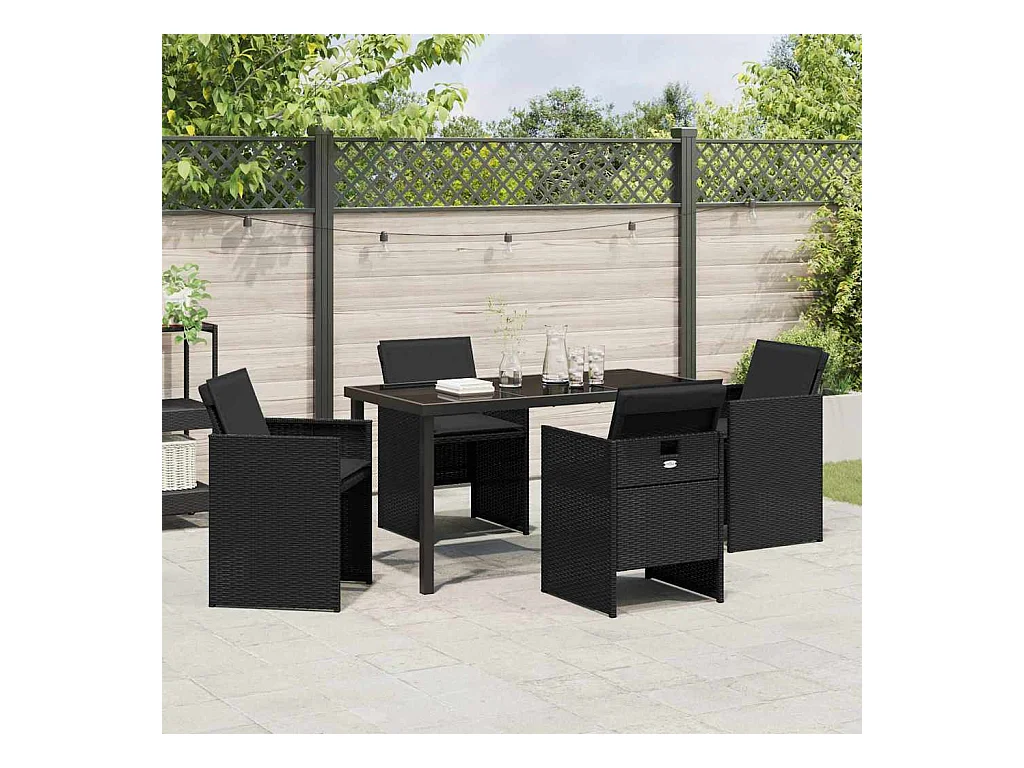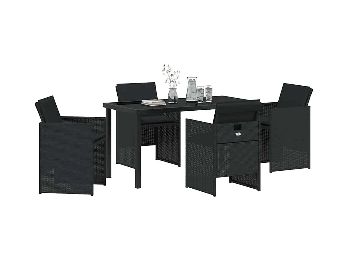 Set da pranzo da giardino 5 pezzi con cuscini in polyrattan nero