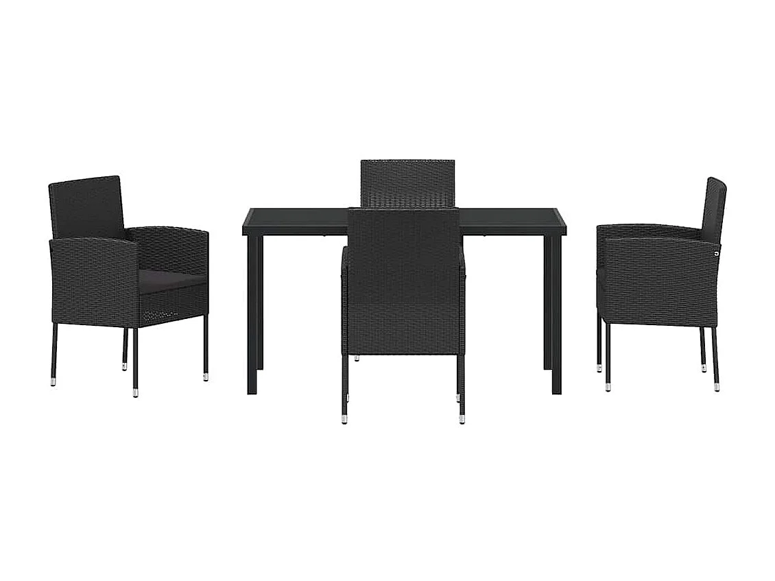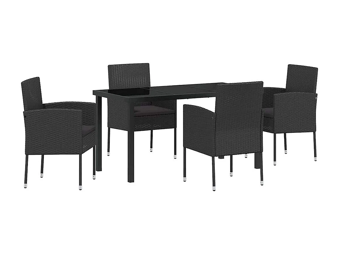 Set da pranzo da giardino in rattan nero da 5 pezzi