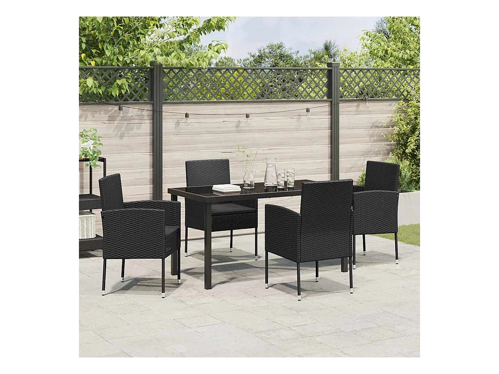 Set da pranzo da giardino 5 pezzi con cuscini in resina nera e vimini
