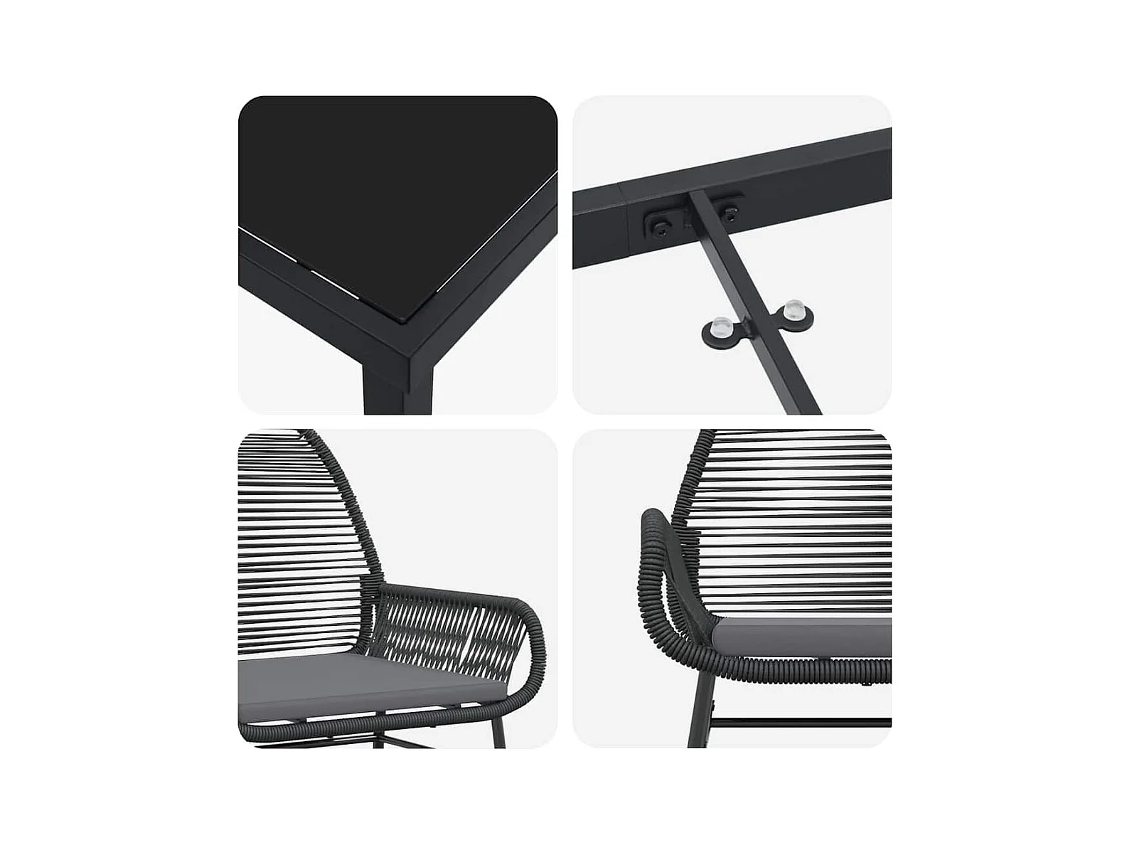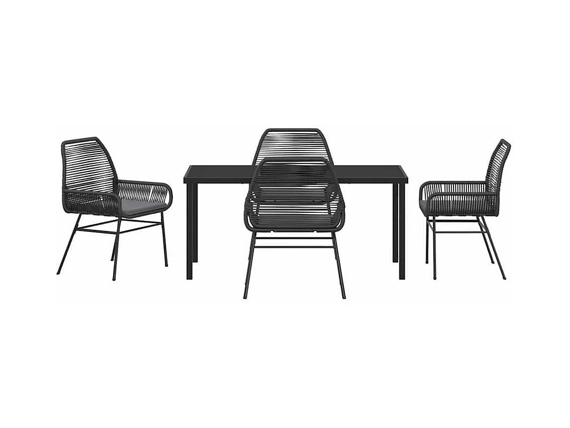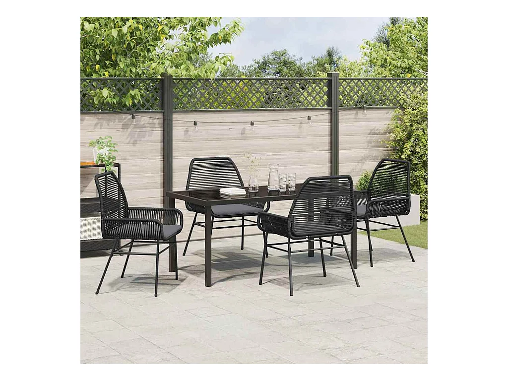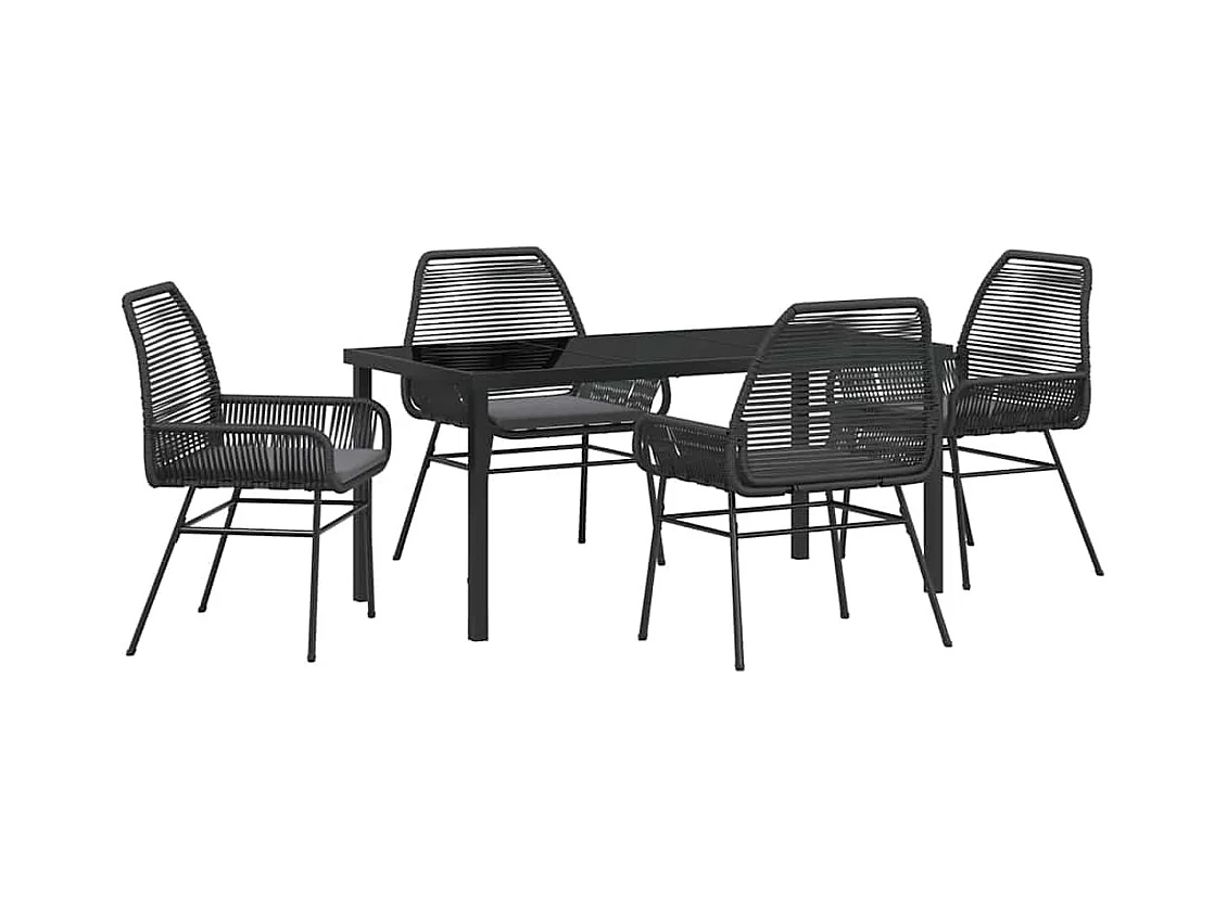 Set da pranzo da giardino 5 pezzi con cuscini in polyrattan nero