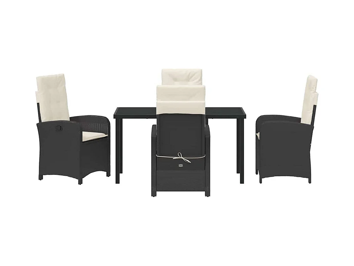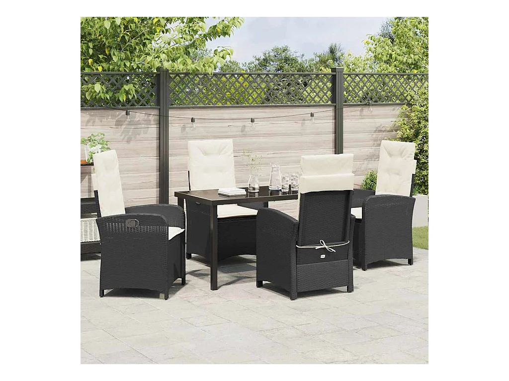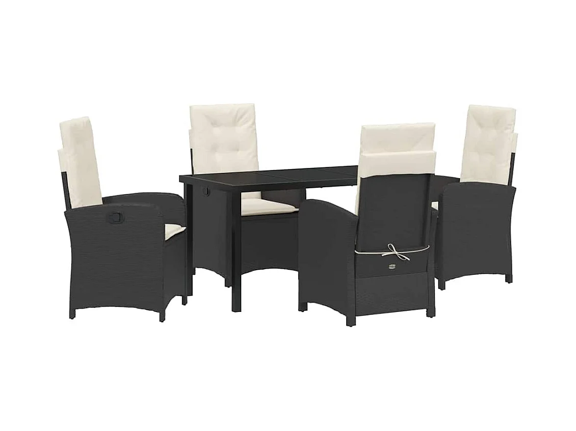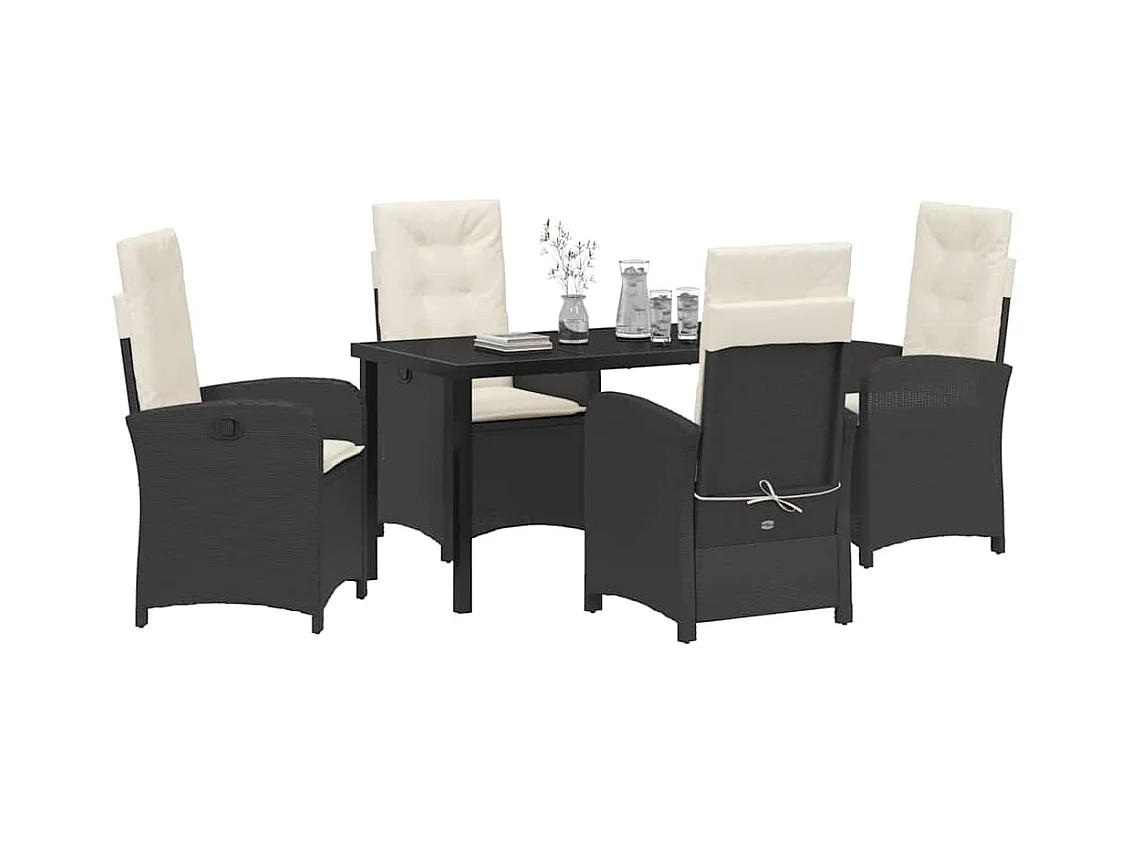 Set da pranzo da giardino 5 pezzi con cuscini in polyrattan nero