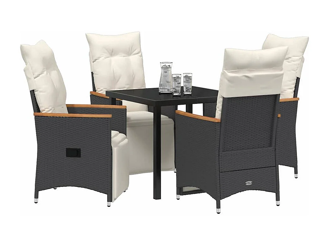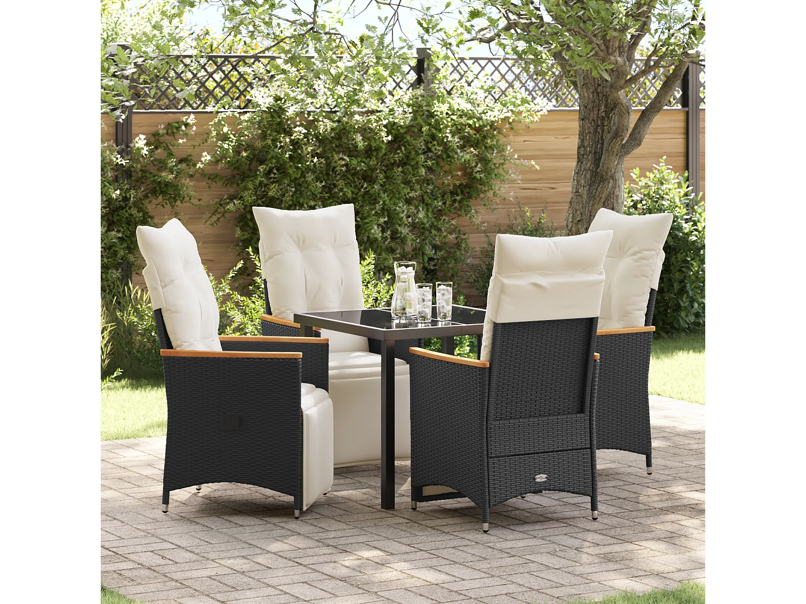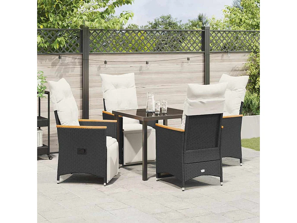 Set da pranzo da giardino 5 pezzi con cuscini in resina nera e vimini