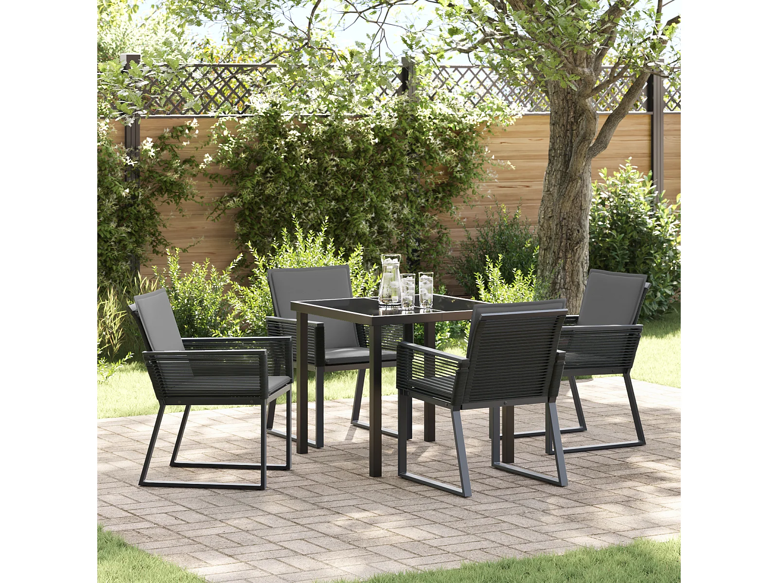 Set da pranzo da giardino da 5 pezzi con cuscini in rattan di poliestere nero
