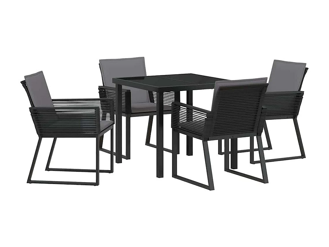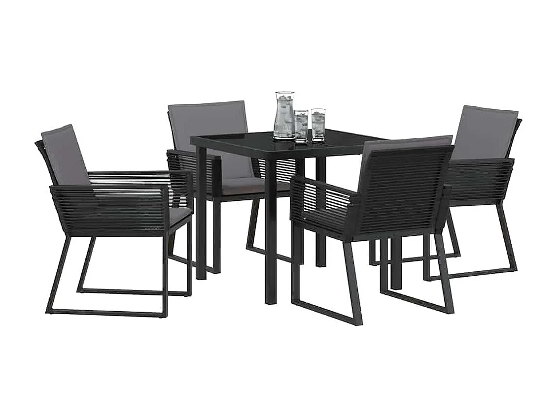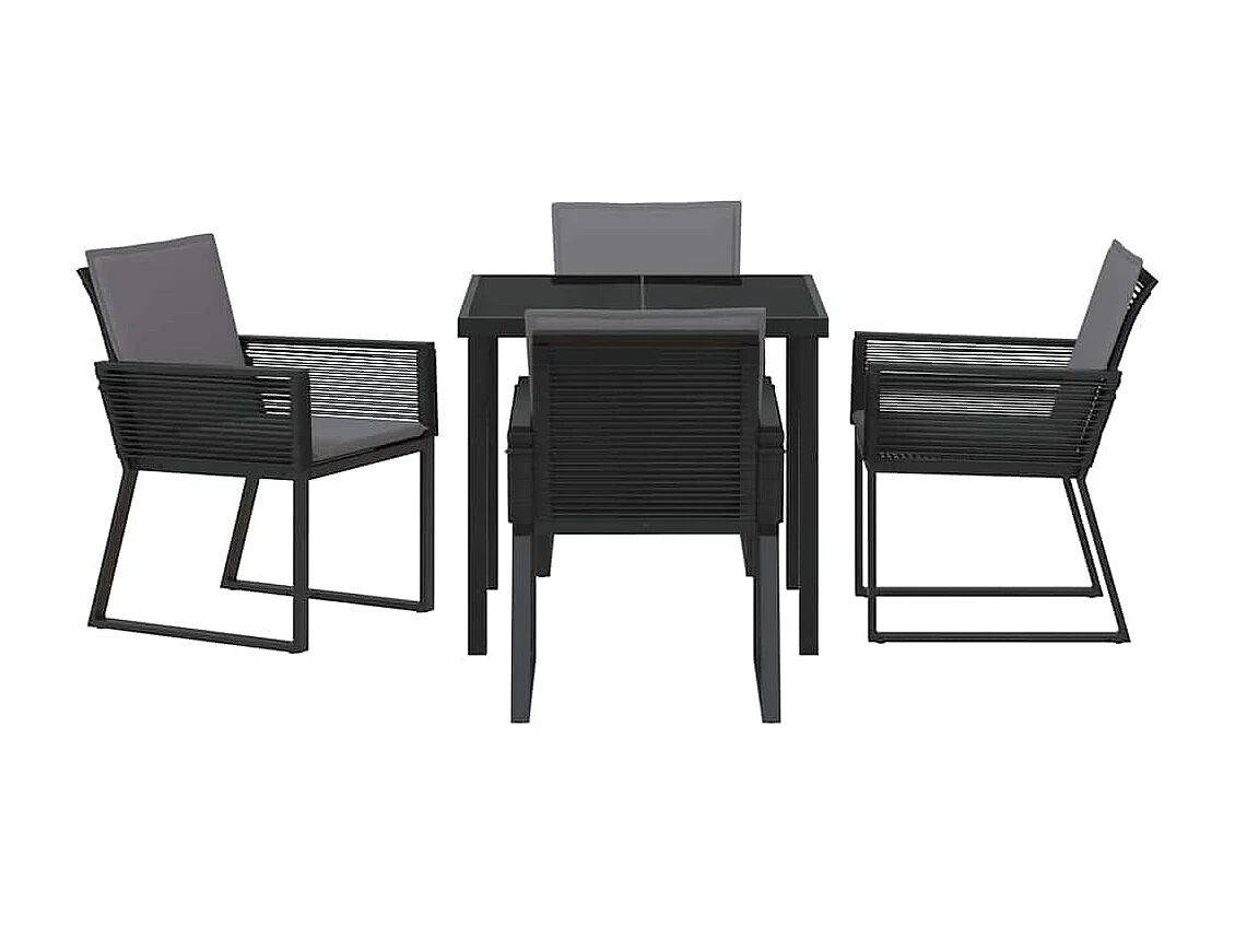 Set da pranzo da giardino 5 pezzi con cuscini in rattan nero Poly