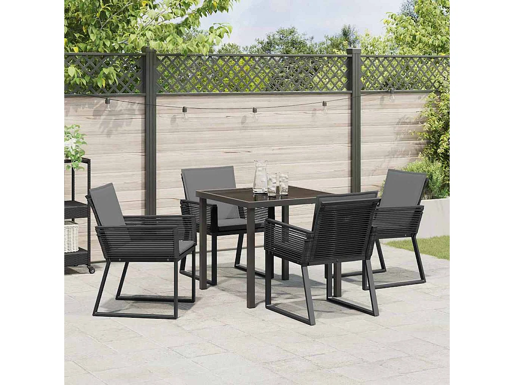 Set da pranzo da giardino 5 pezzi con cuscini in poliresina nera