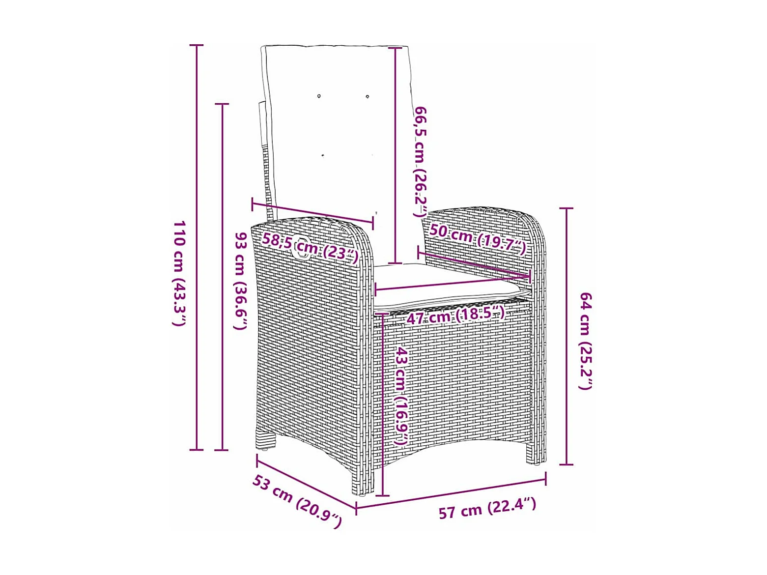 Set da pranzo da giardino 5 pezzi con cuscini in rattan nero