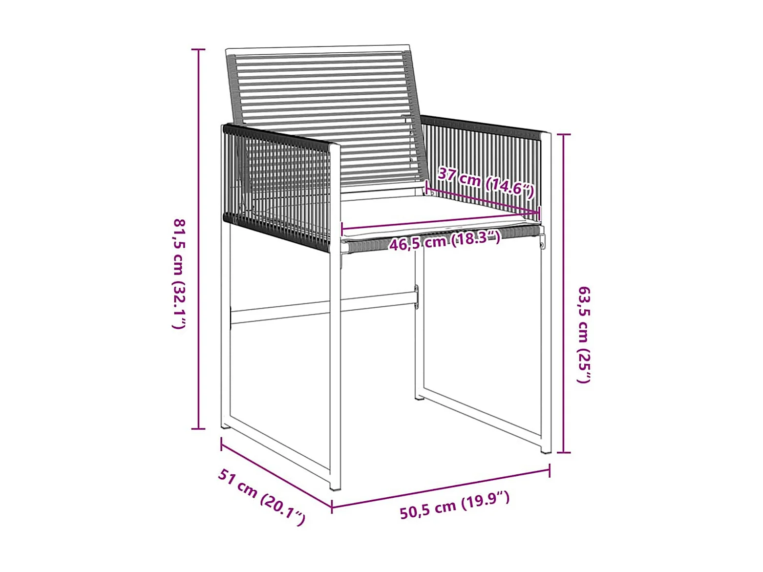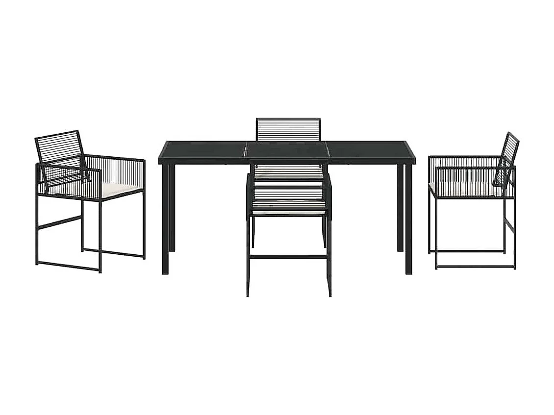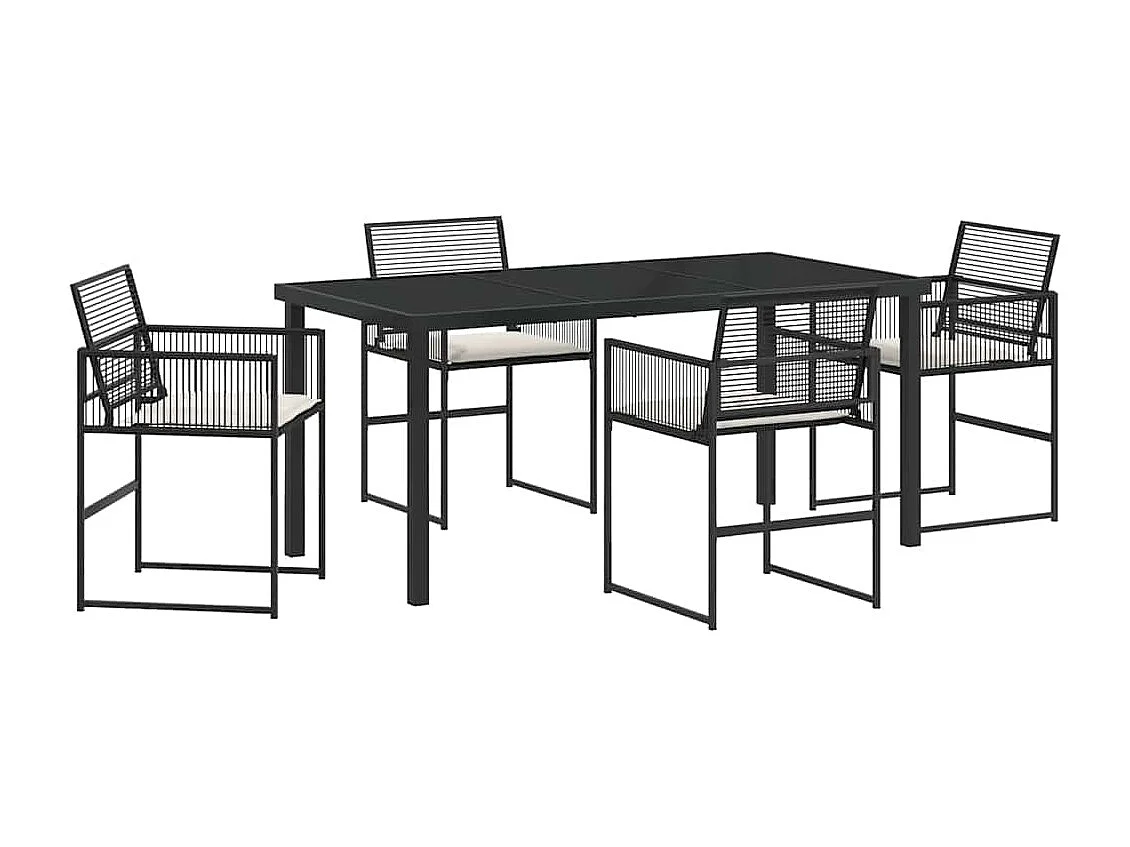 Set da pranzo da giardino da 5 pezzi con cuscini in polyrattan nero