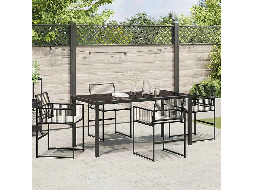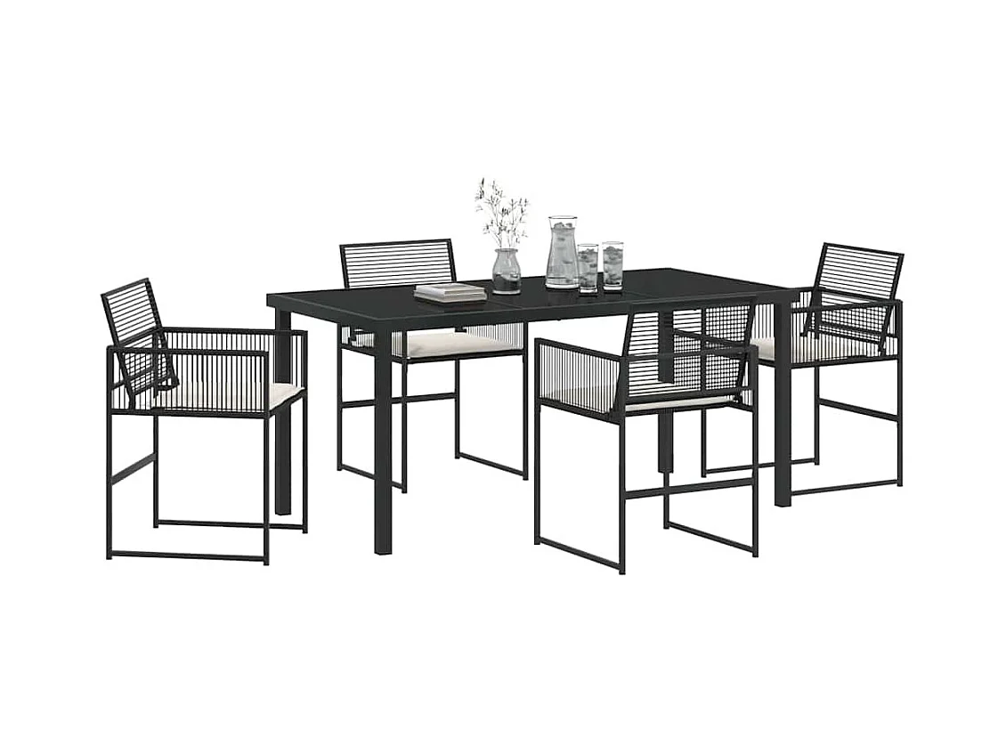 Set da pranzo da giardino 5 pezzi con cuscini in rattan nero Poly