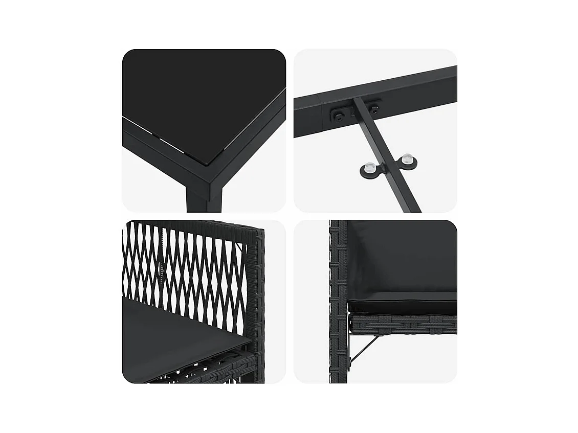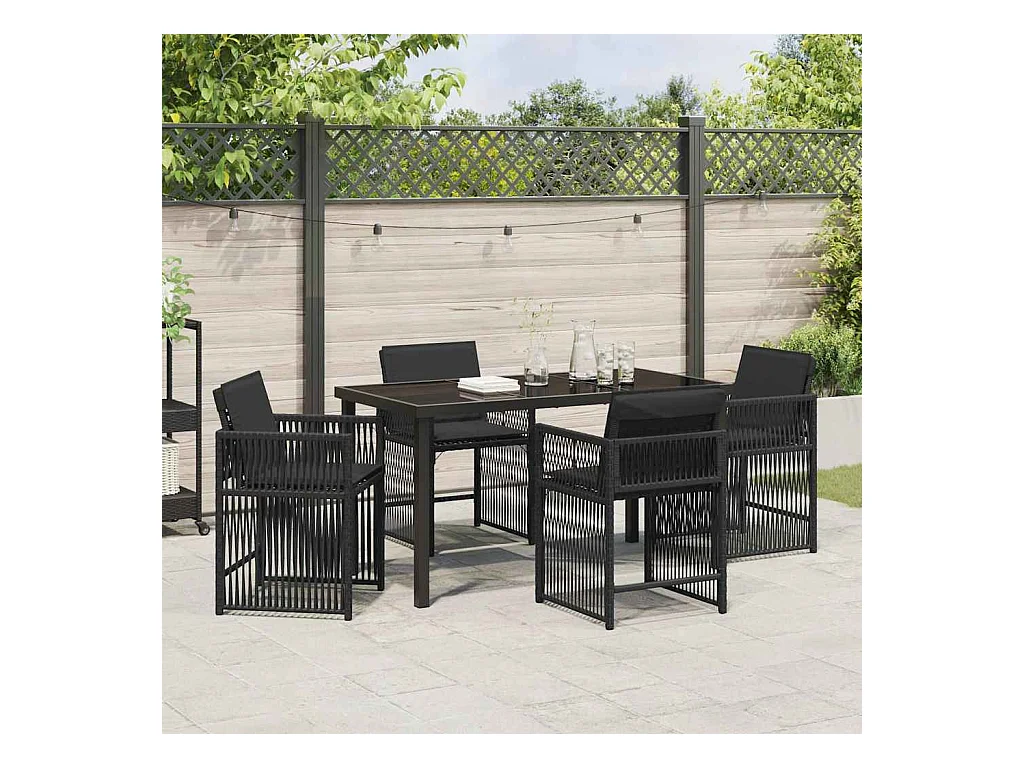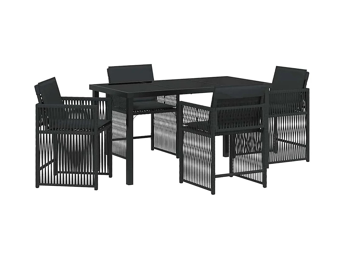 Set da pranzo da giardino 5 pezzi con cuscini in rattan nero