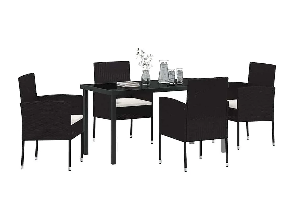 Set da pranzo da giardino 5 pezzi con cuscini in rattan nero PE