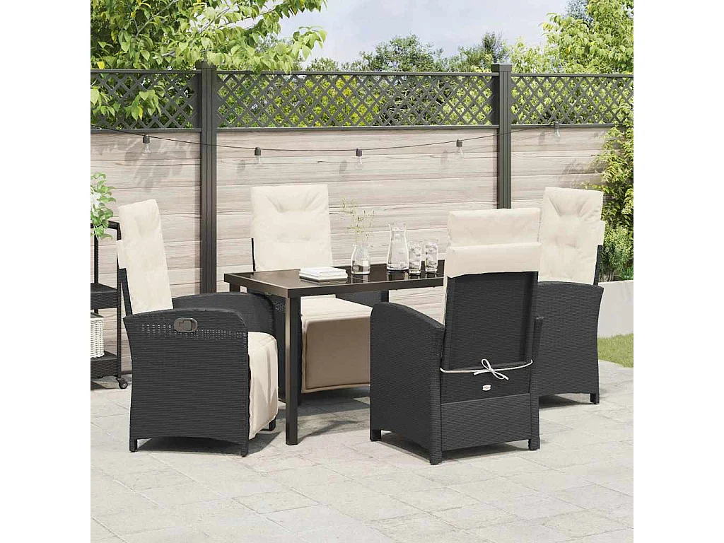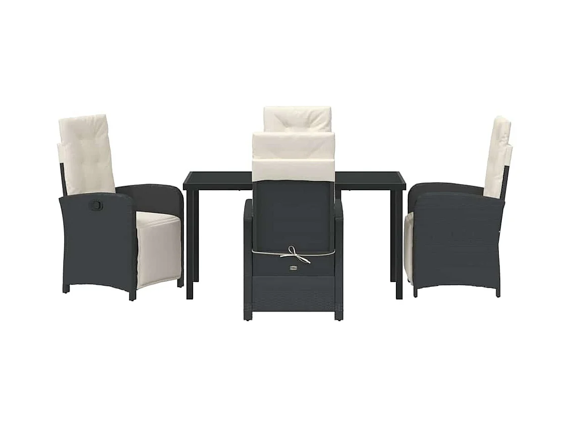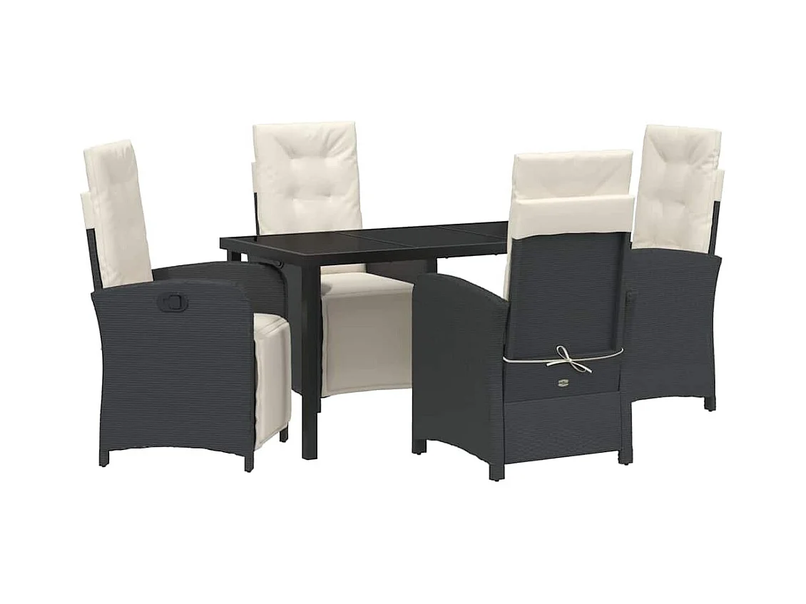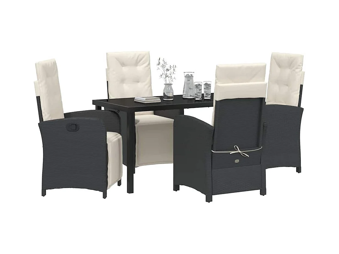 Set da pranzo da giardino 5 pezzi con cuscini in rattan sintetico nero