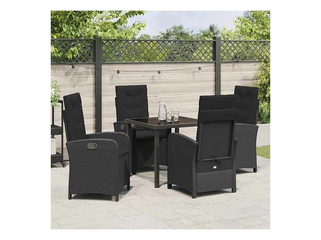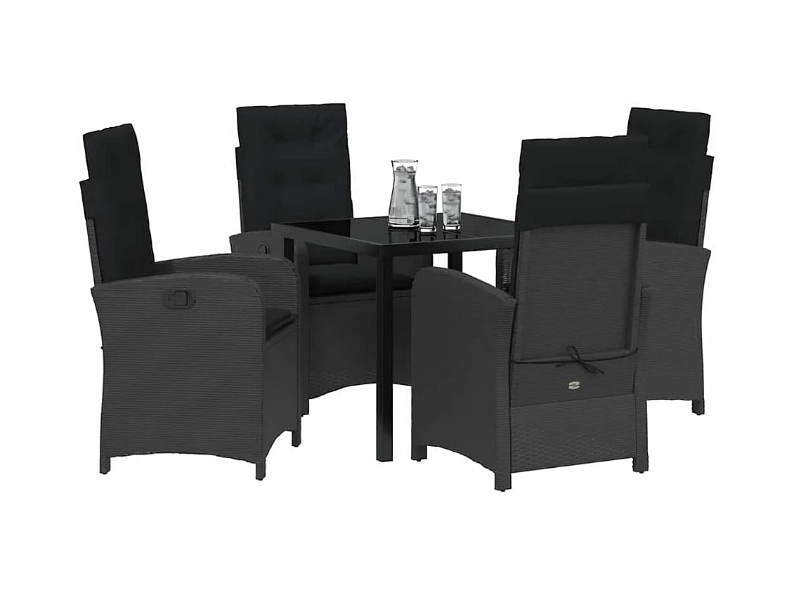 Set da pranzo da giardino 5 pezzi con cuscini in resina nera e vimini