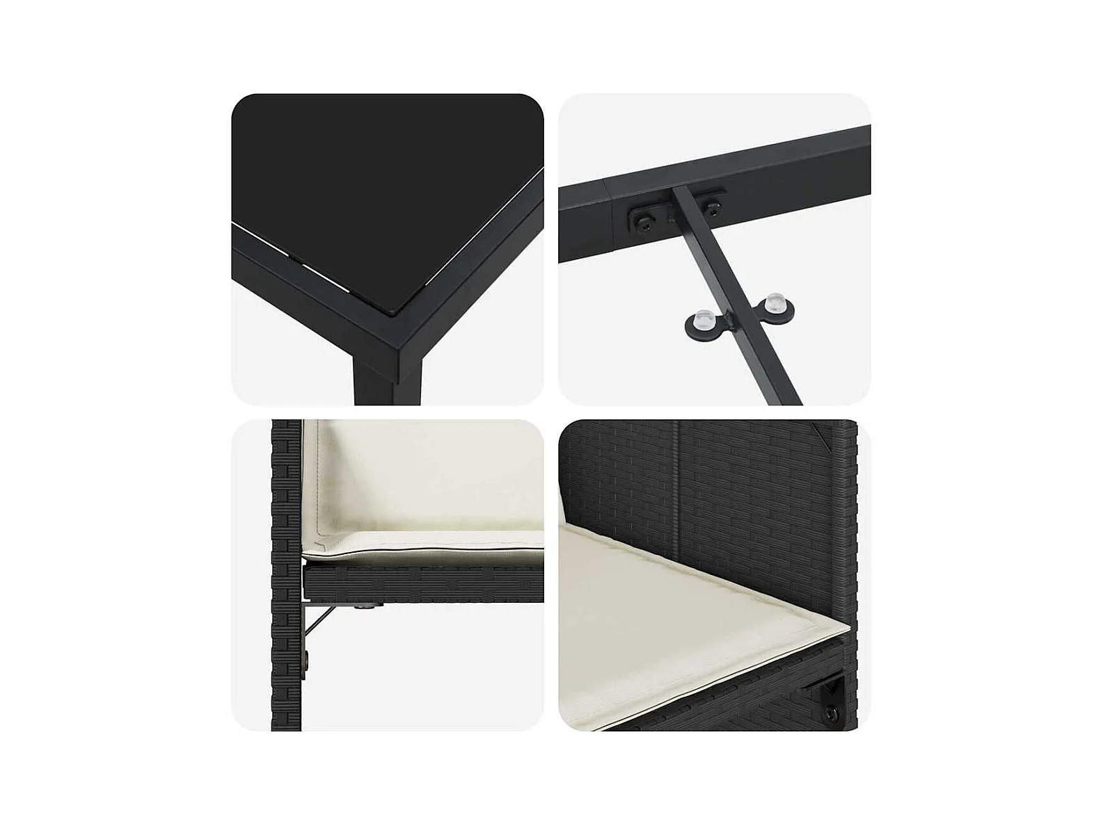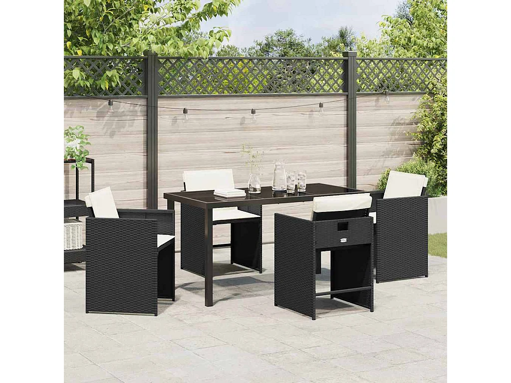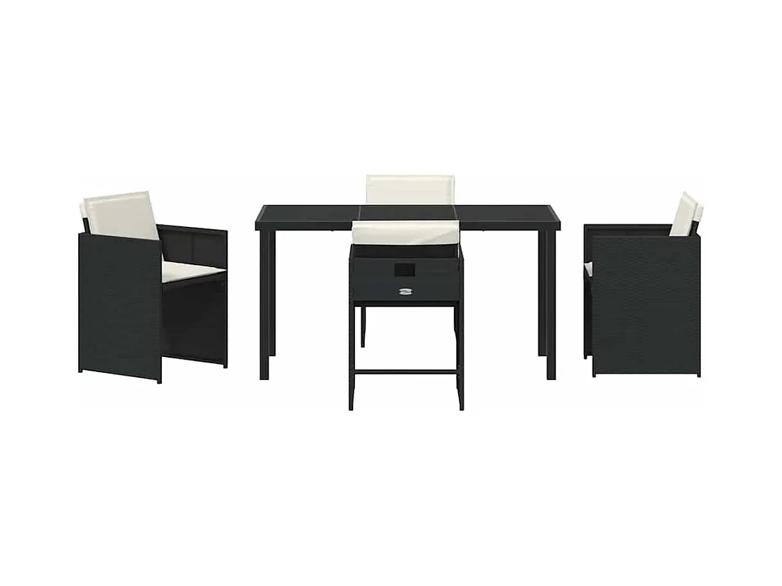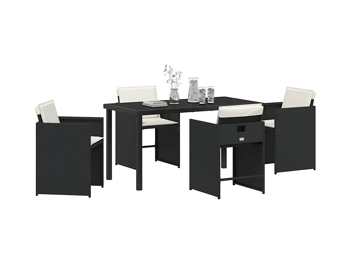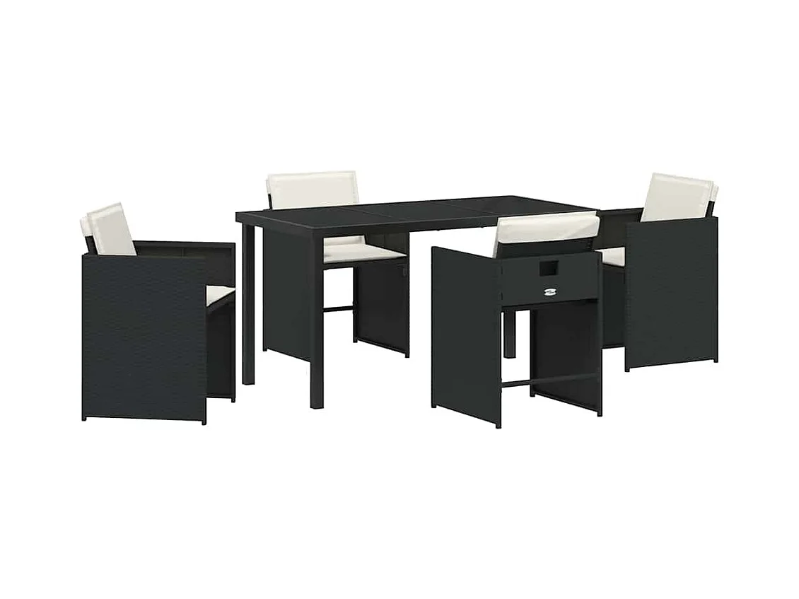 Set da pranzo da giardino 5 pezzi in polyrattan nero