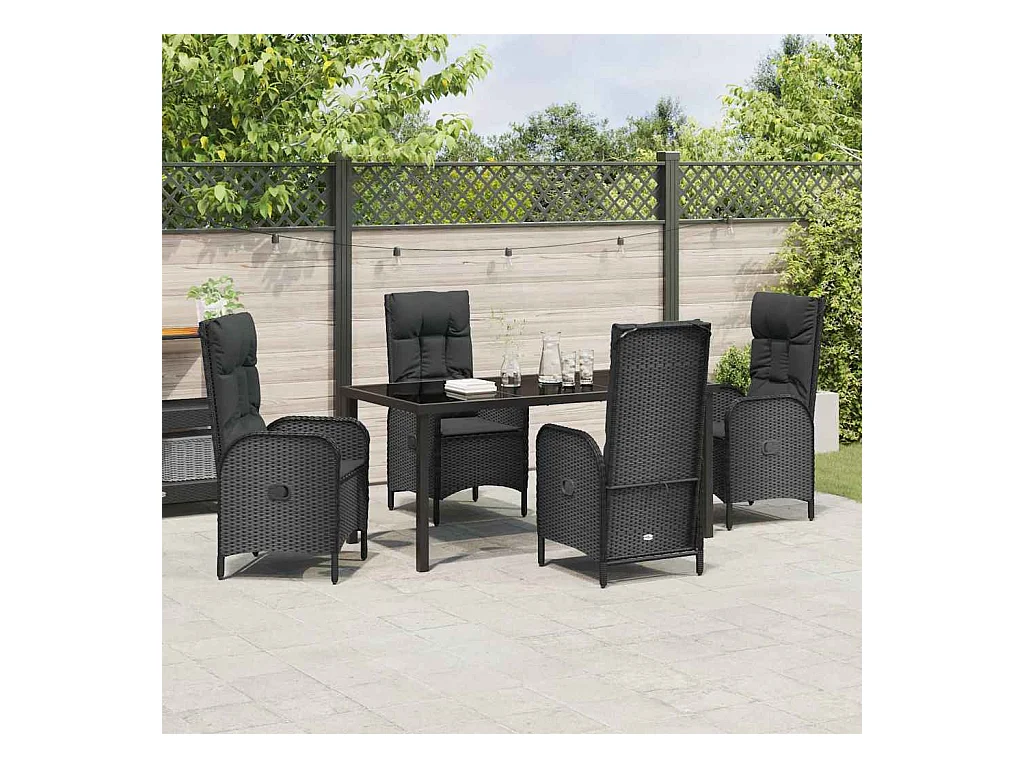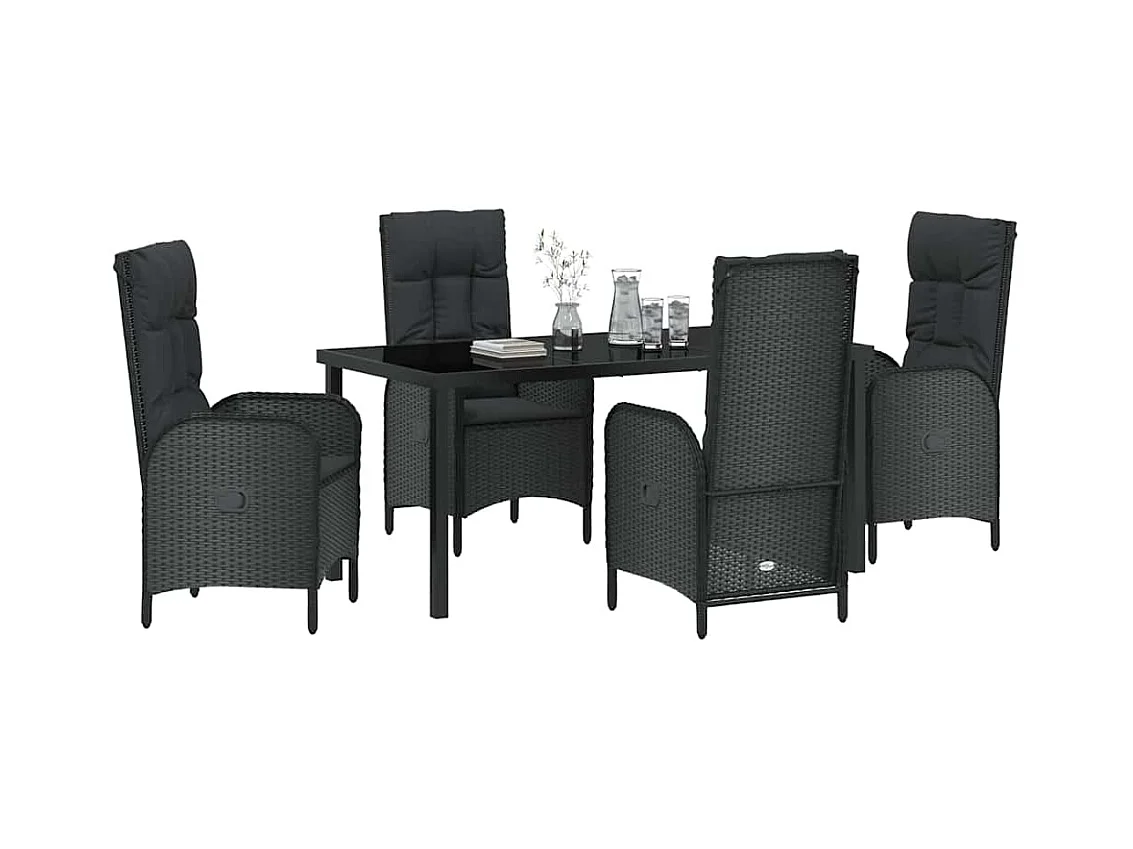 Set da pranzo da giardino 5 pezzi in rattan nero Poly