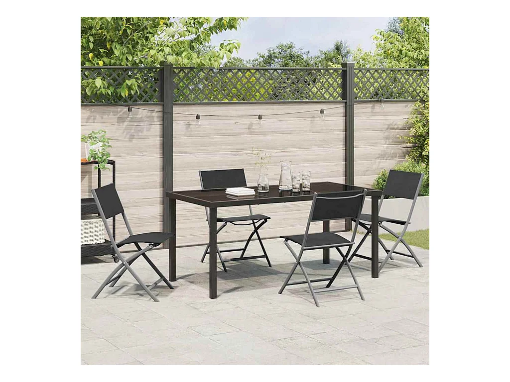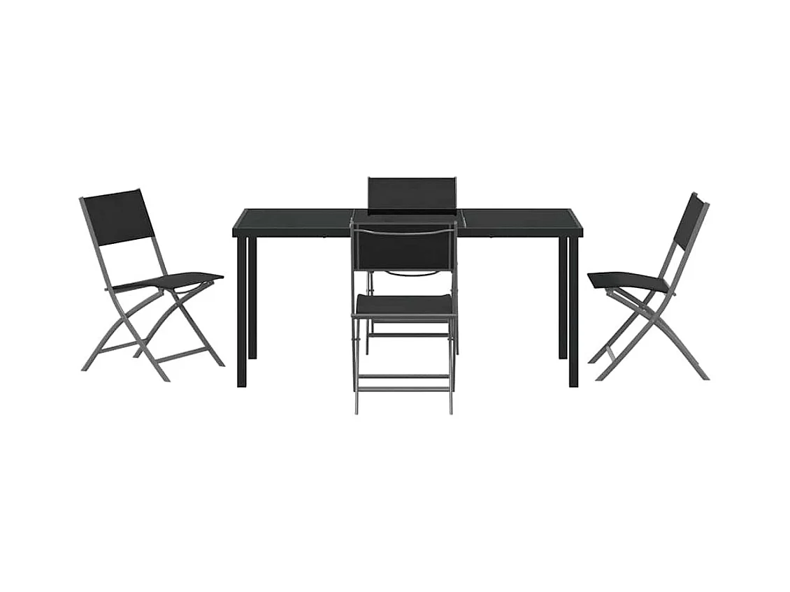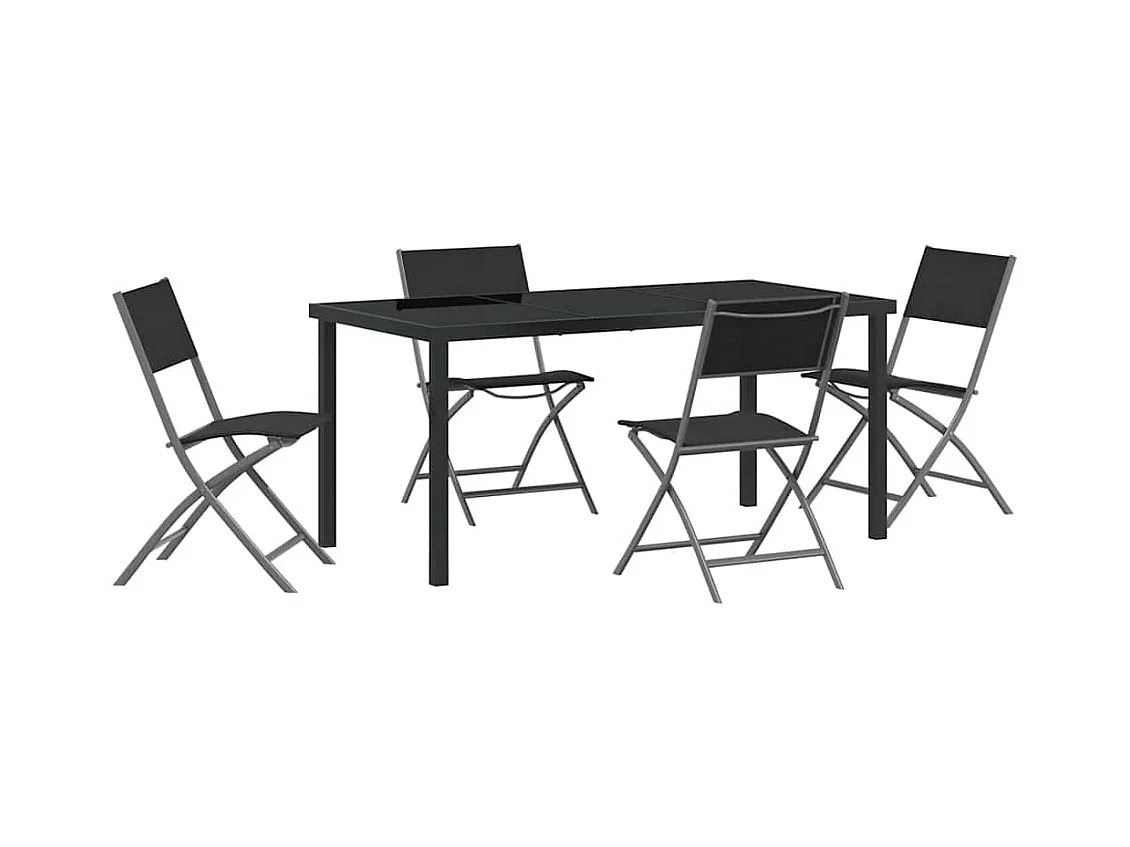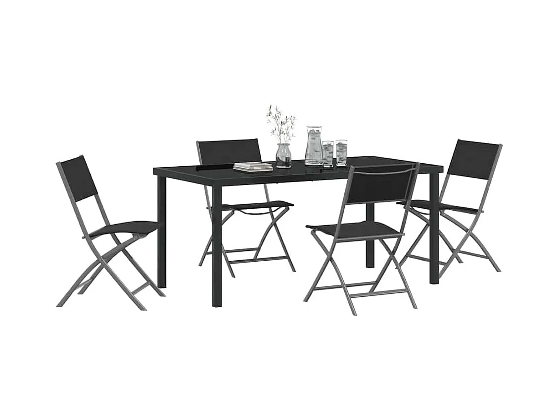 Set da pranzo da giardino 5 pezzi in tessuto textilene nero e acciaio