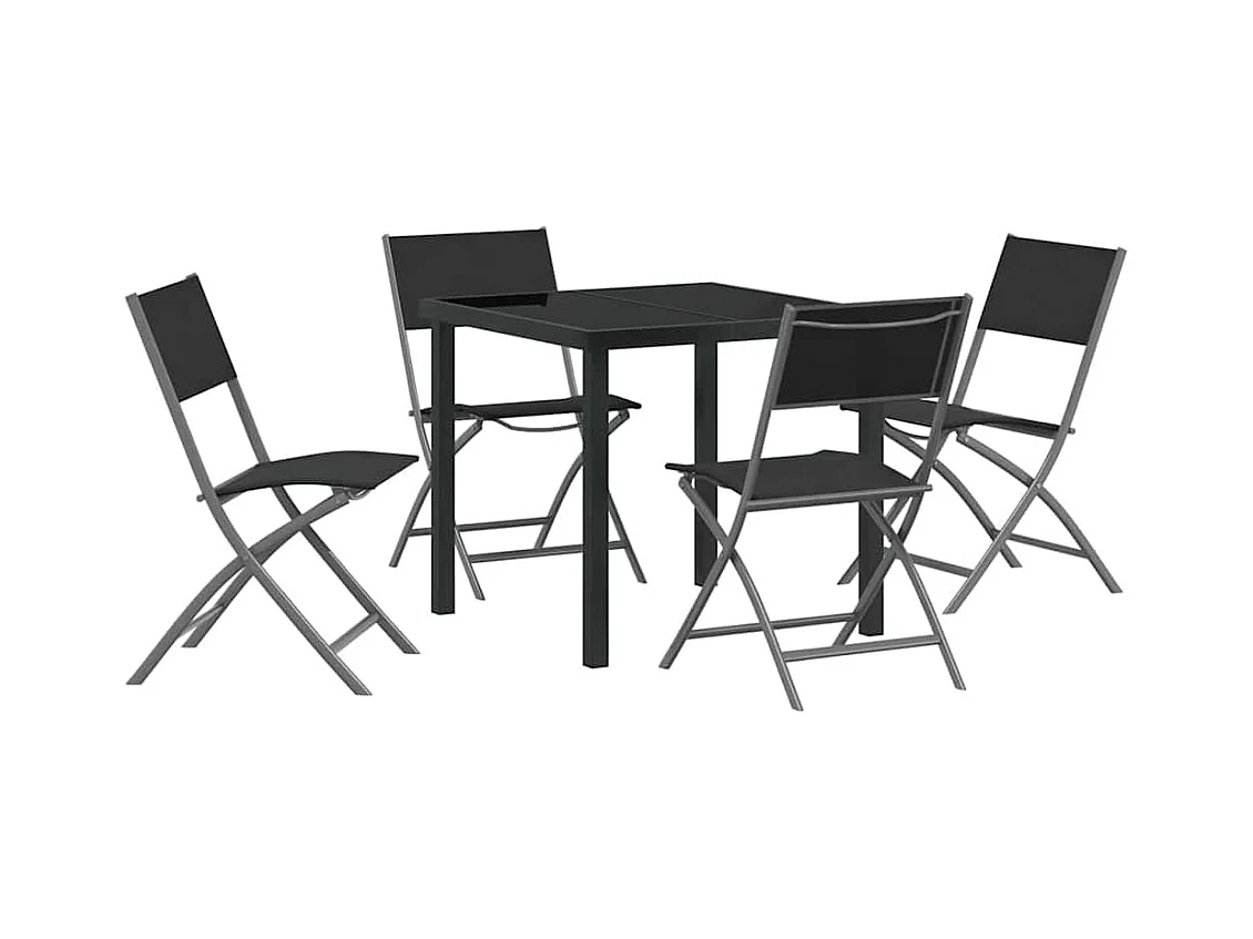 Set da pranzo da giardino 5 pezzi - Textilene nero e acciaio