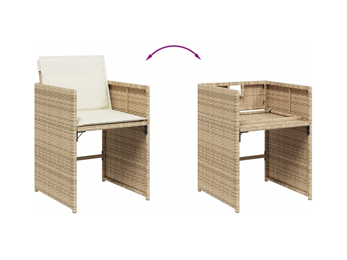 Set Pranzo da Giardino 9 pz con Cuscini Beige Misto Polyrattan