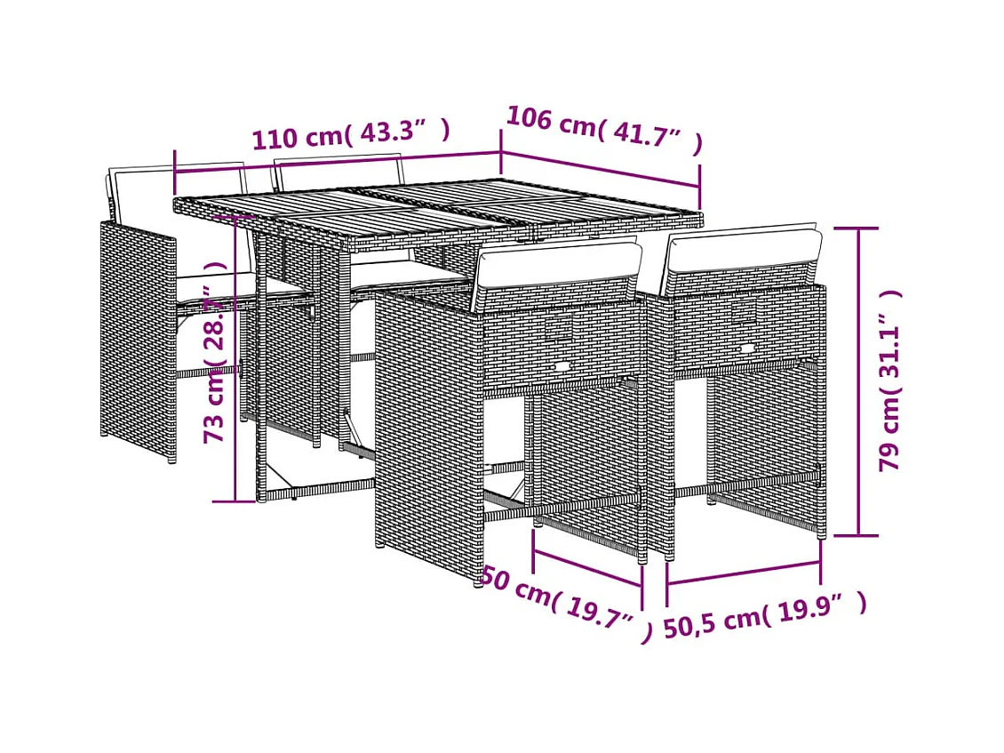 Set Pranzo da Giardino 5 pz con Cuscini Beige Misto Polyrattan
