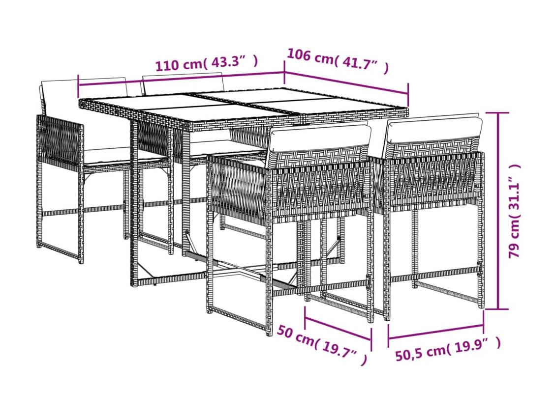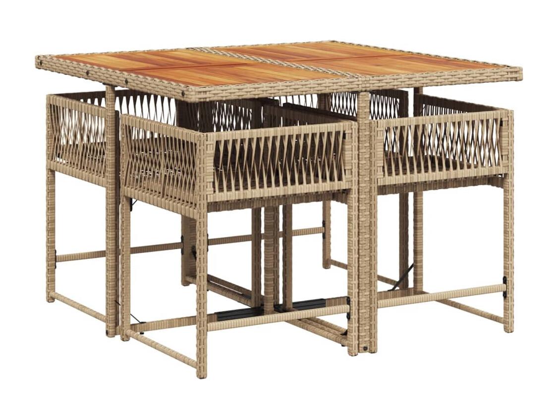 Set da Pranzo da Giardino 5 pz con Cuscini Beige in Polyrattan