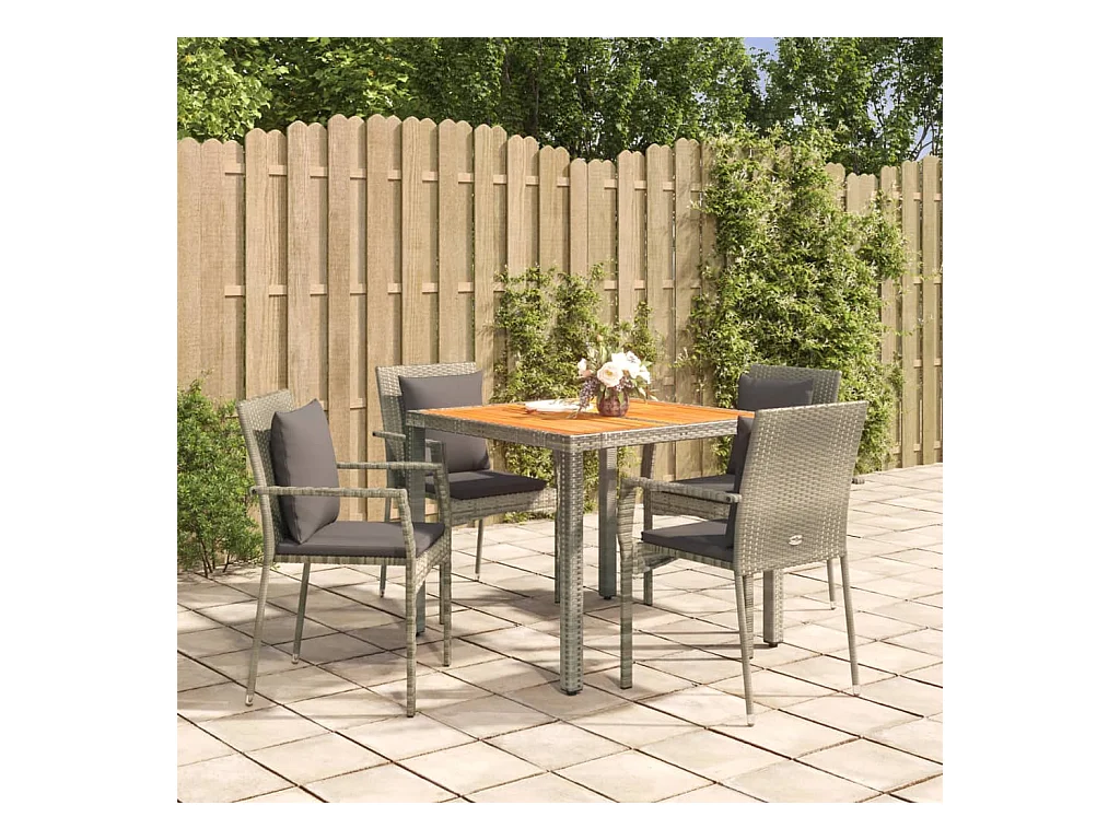Set da Pranzo da Giardino 5 pz con Cuscini in Polyrattan Grigio
