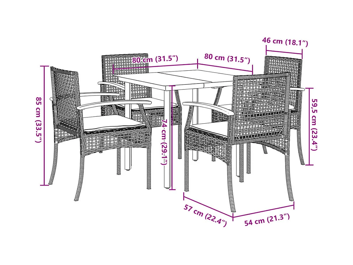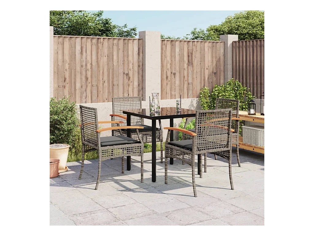 Set da Pranzo da Giardino 5 pz con Cuscini in Polyrattan Grigio