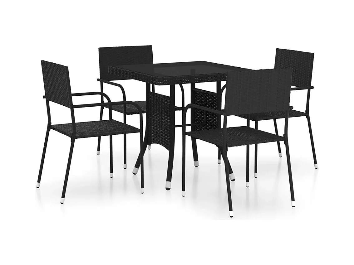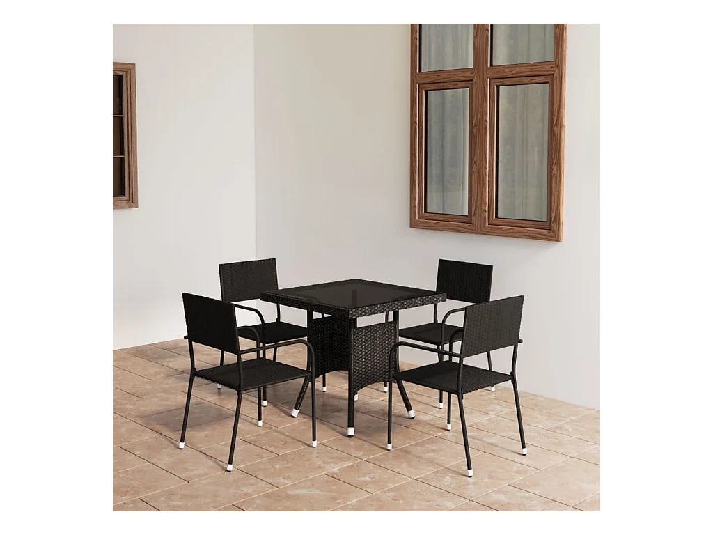 Set da Pranzo da Giardino 5 pz in Polyrattan Nero