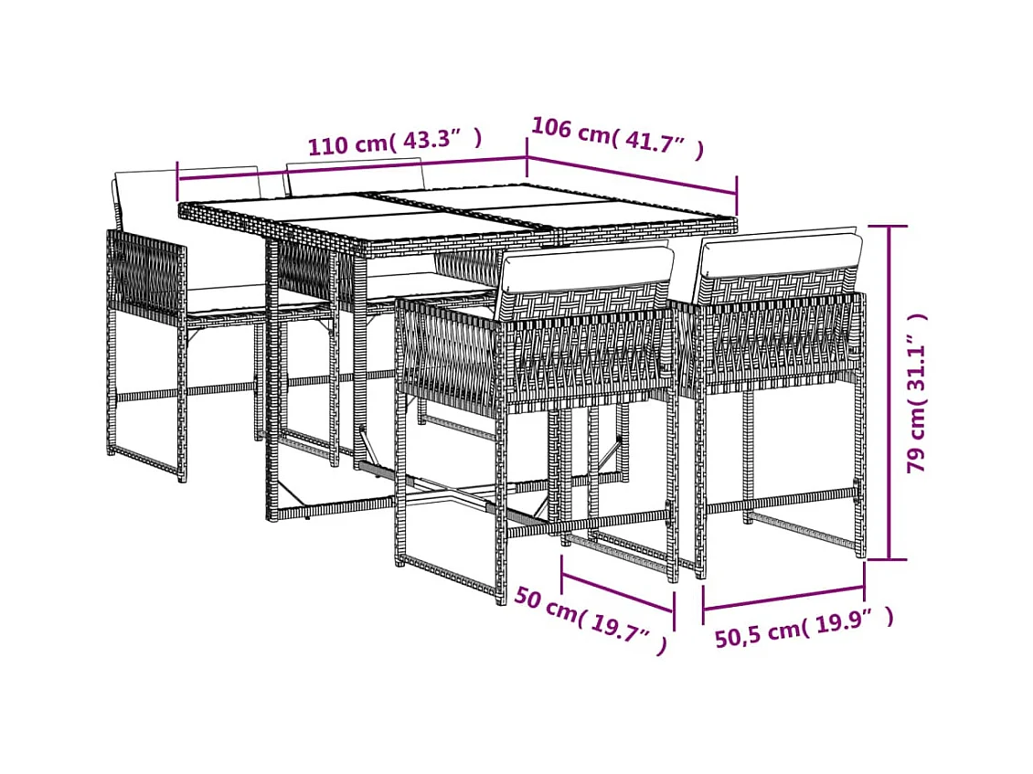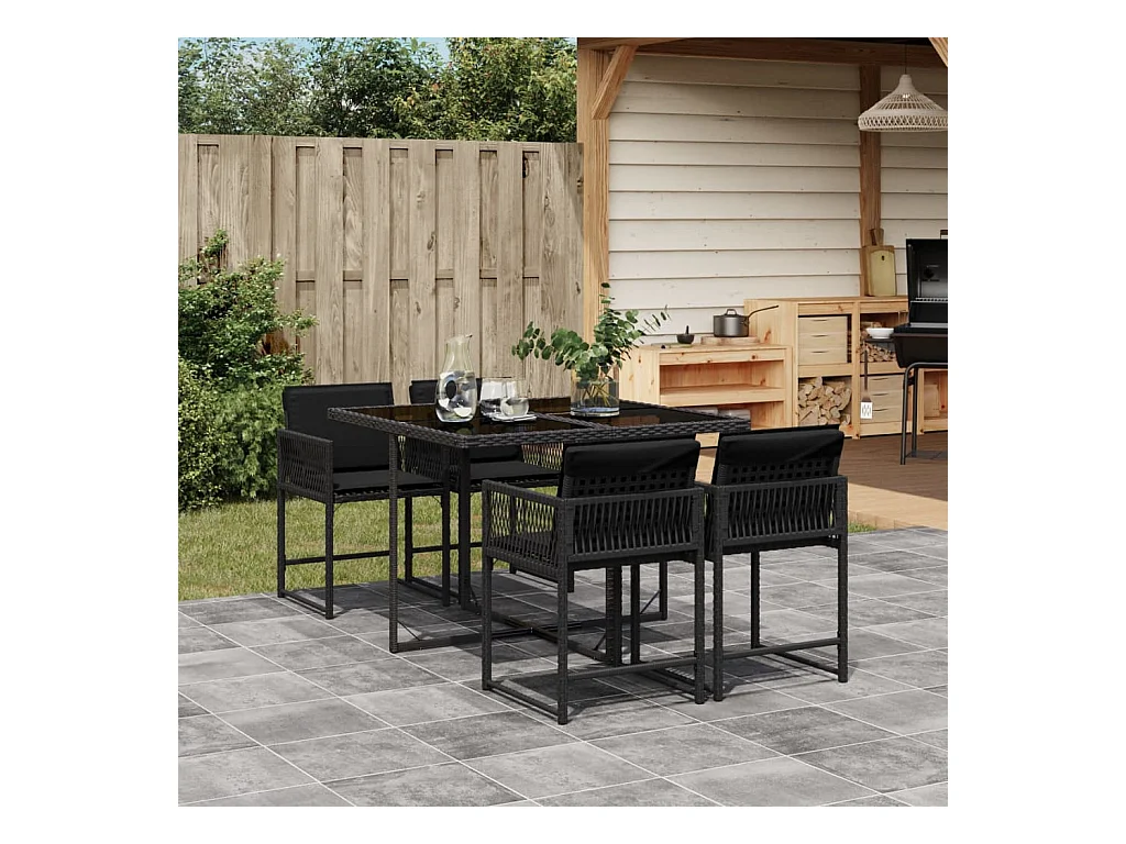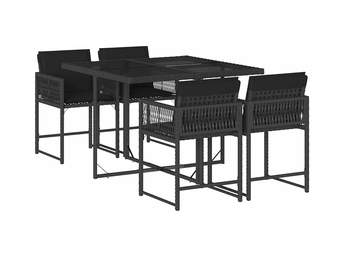 Set da Pranzo da Giardino 5 pz Nero con Cuscini in Polyrattan