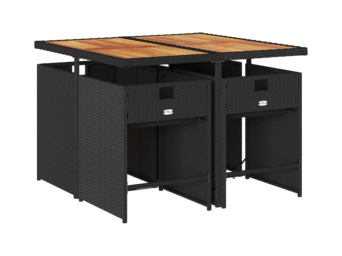 Set da Pranzo da Giardino 5 pz Nero con Cuscini in Polyrattan
