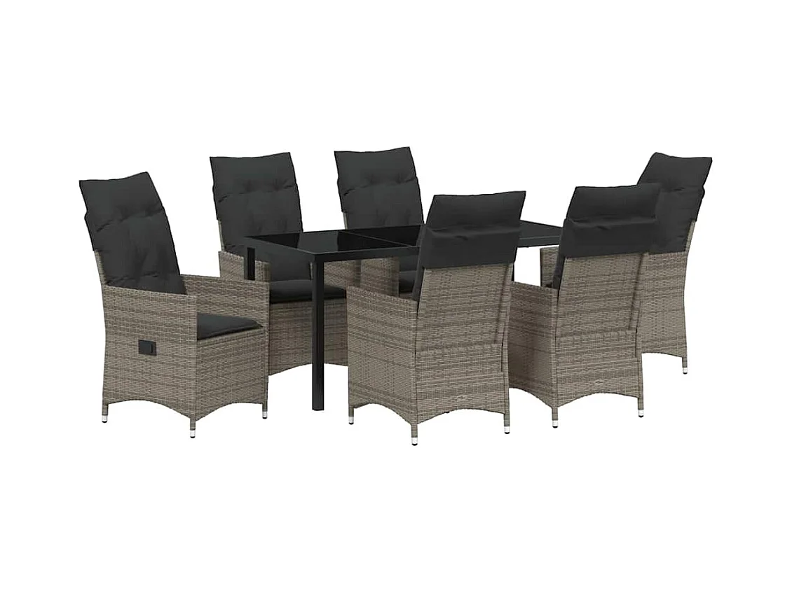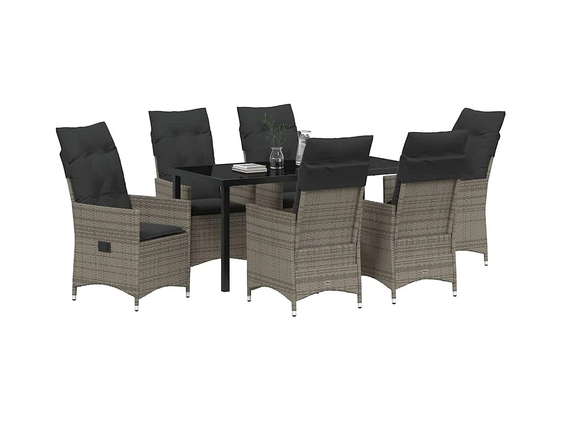 Set da pranzo da giardino 7 pezzi con cuscini in polyrattan grigio