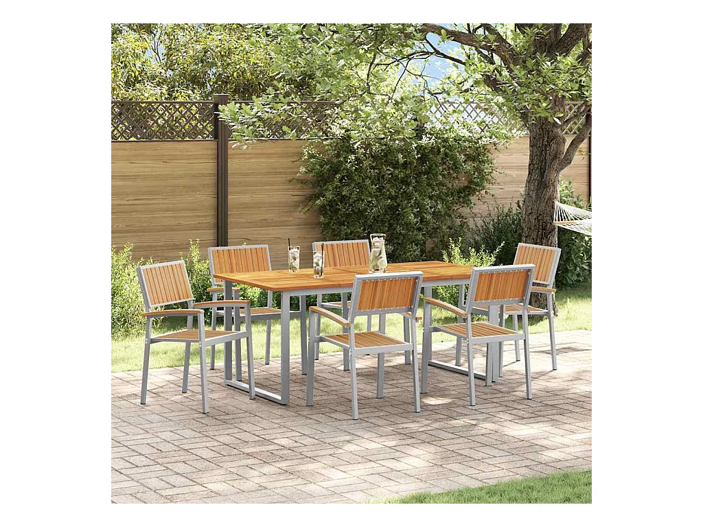 Set da pranzo da giardino 7 pezzi grigio e marrone