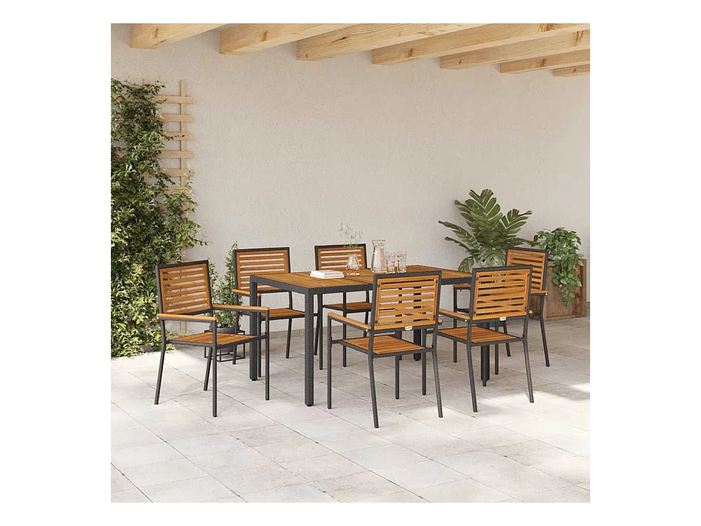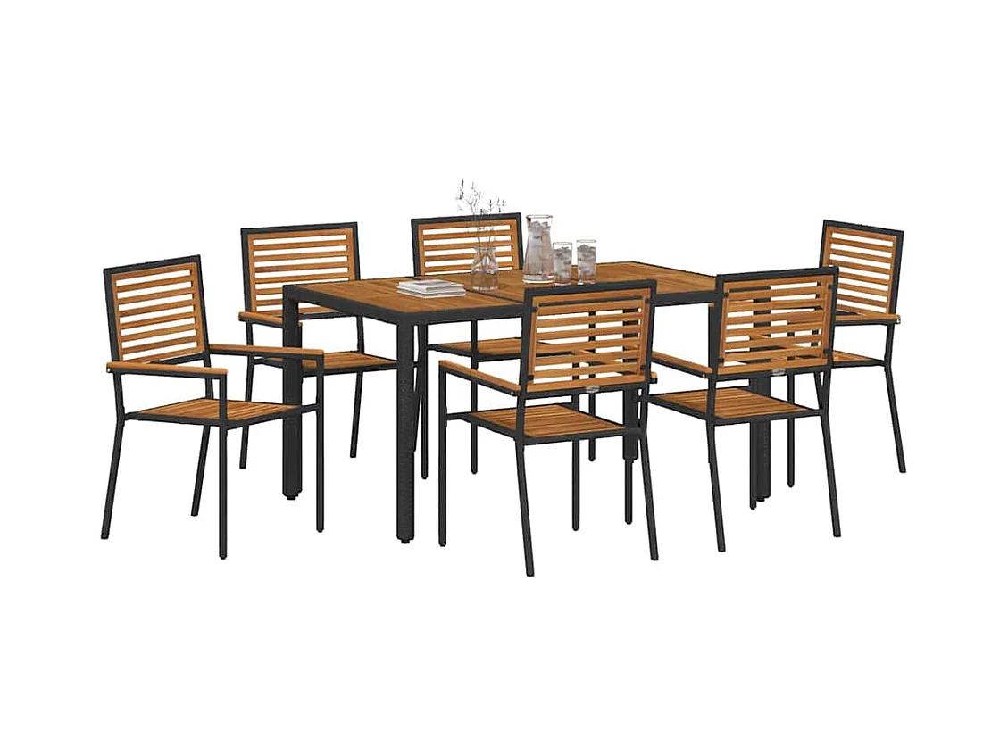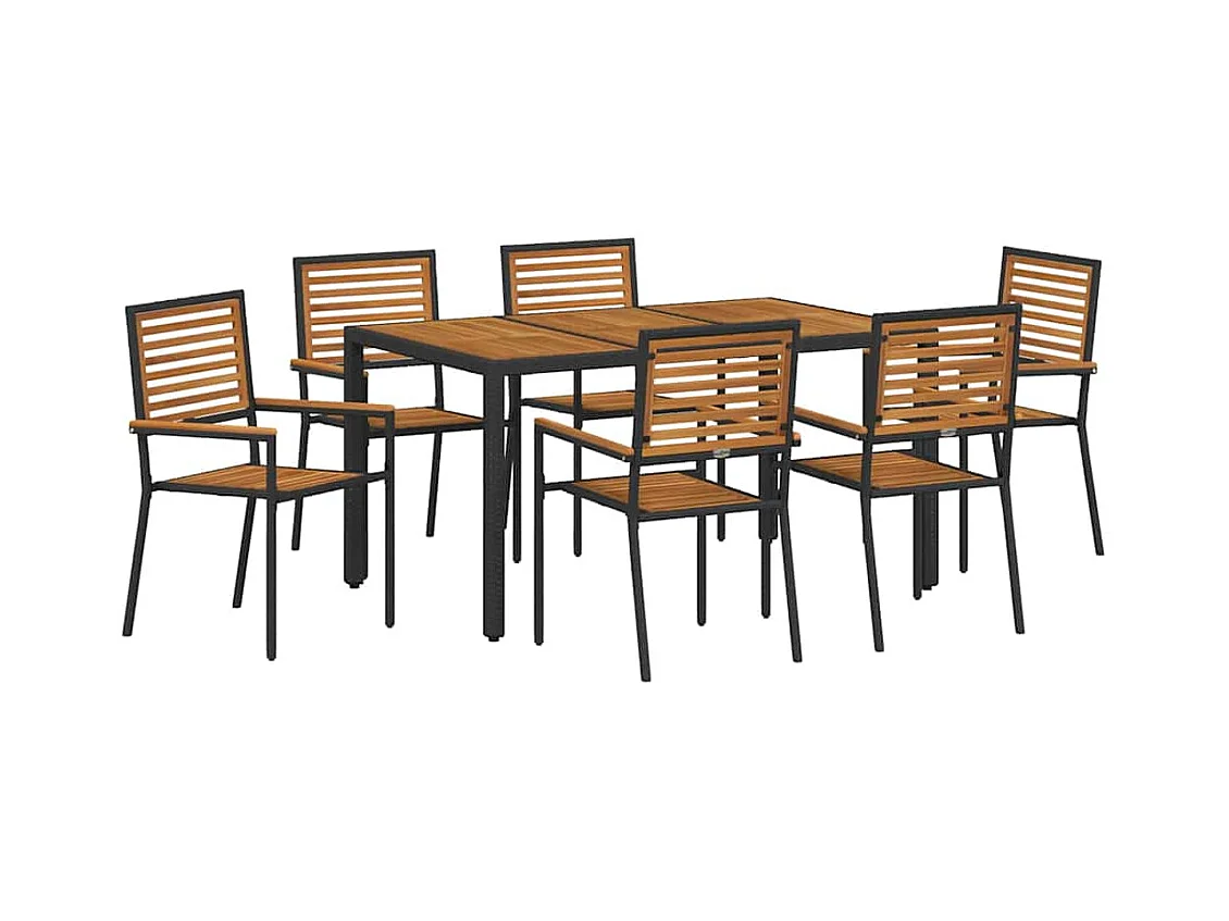 Set da pranzo da giardino 7 pezzi, nero, legno