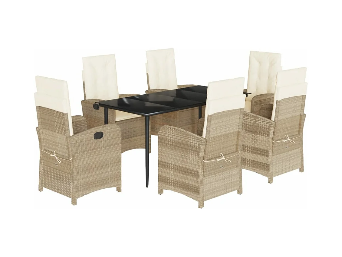 Set da Pranzo da Giardino 9 pz con Cuscini Beige in Polyrattan