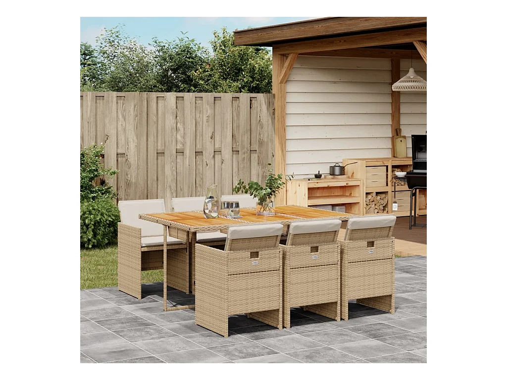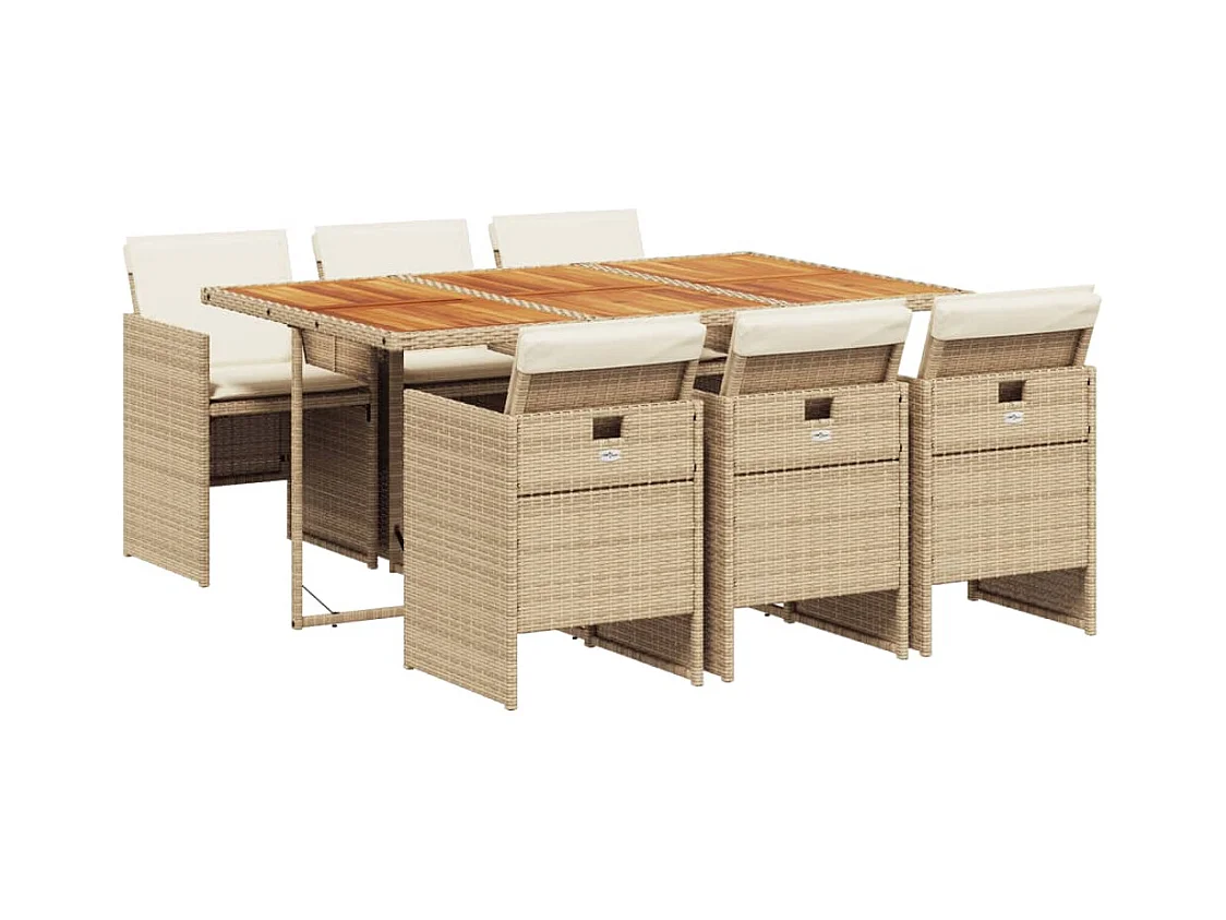 Set Divani da Giardino 7 pz con Cuscini Beige Polyrattan Acacia