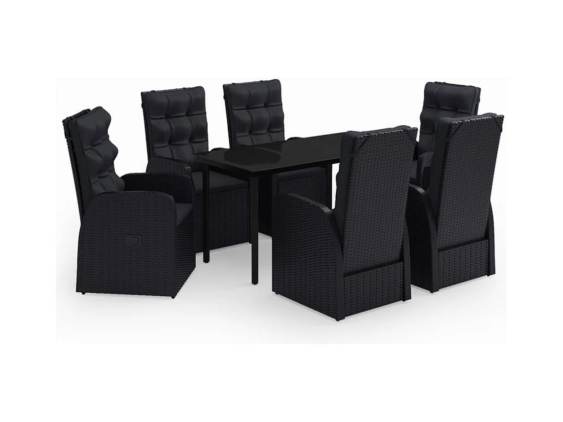Set da Pranzo da Giardino 7 pz con Cuscini Nero