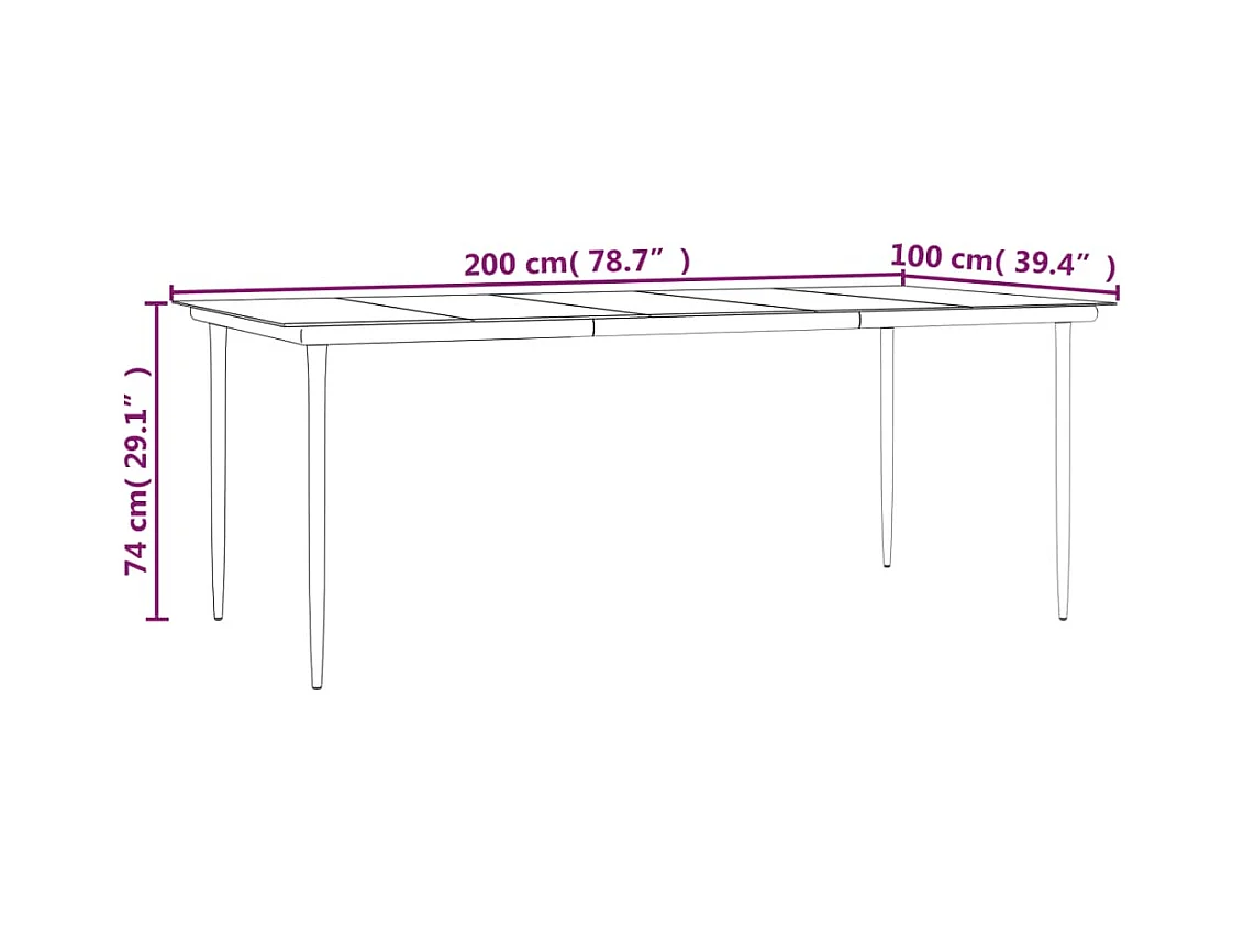 Set di tavolo e sedie da giardino rettangolare in metallo
