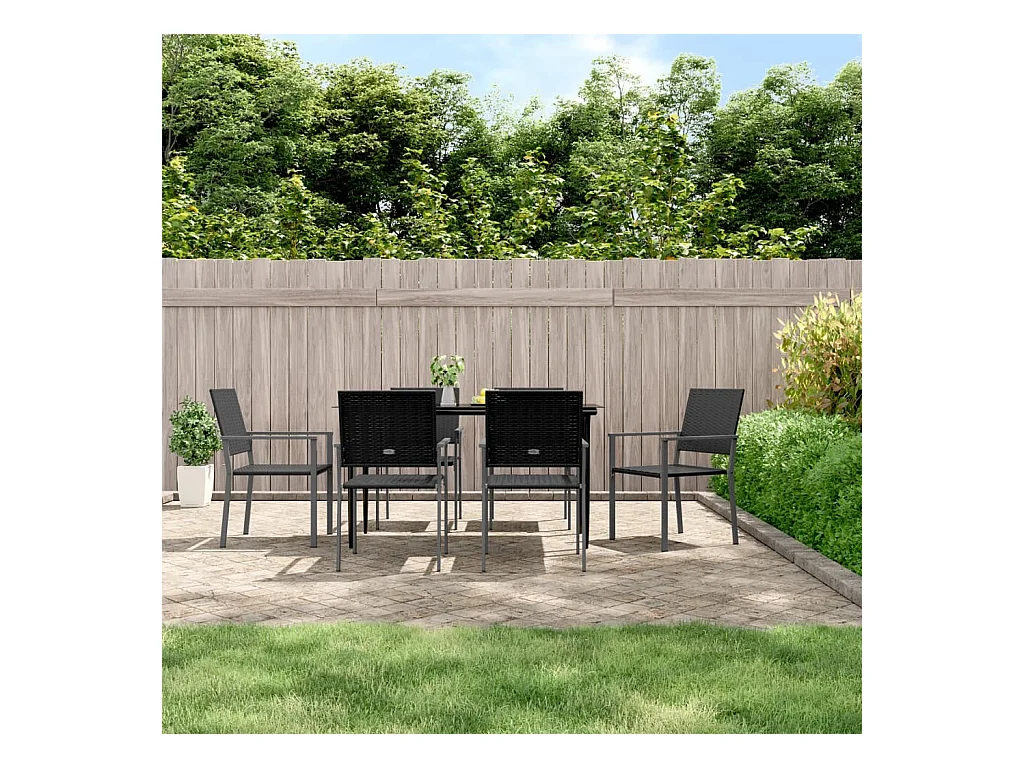 Set da Pranzo da Giardino 17 pz con Cuscini Nero in Polyrattan