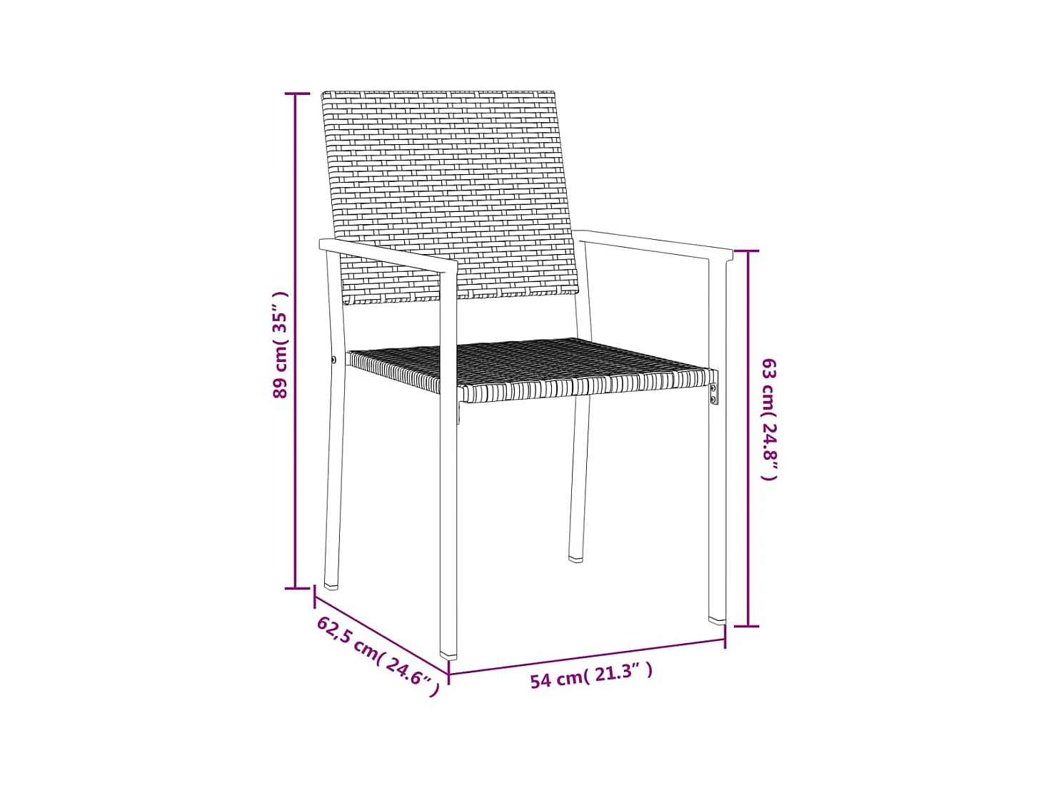 Set da Pranzo da Giardino 2 pz con Cuscini Nero in Polyrattan