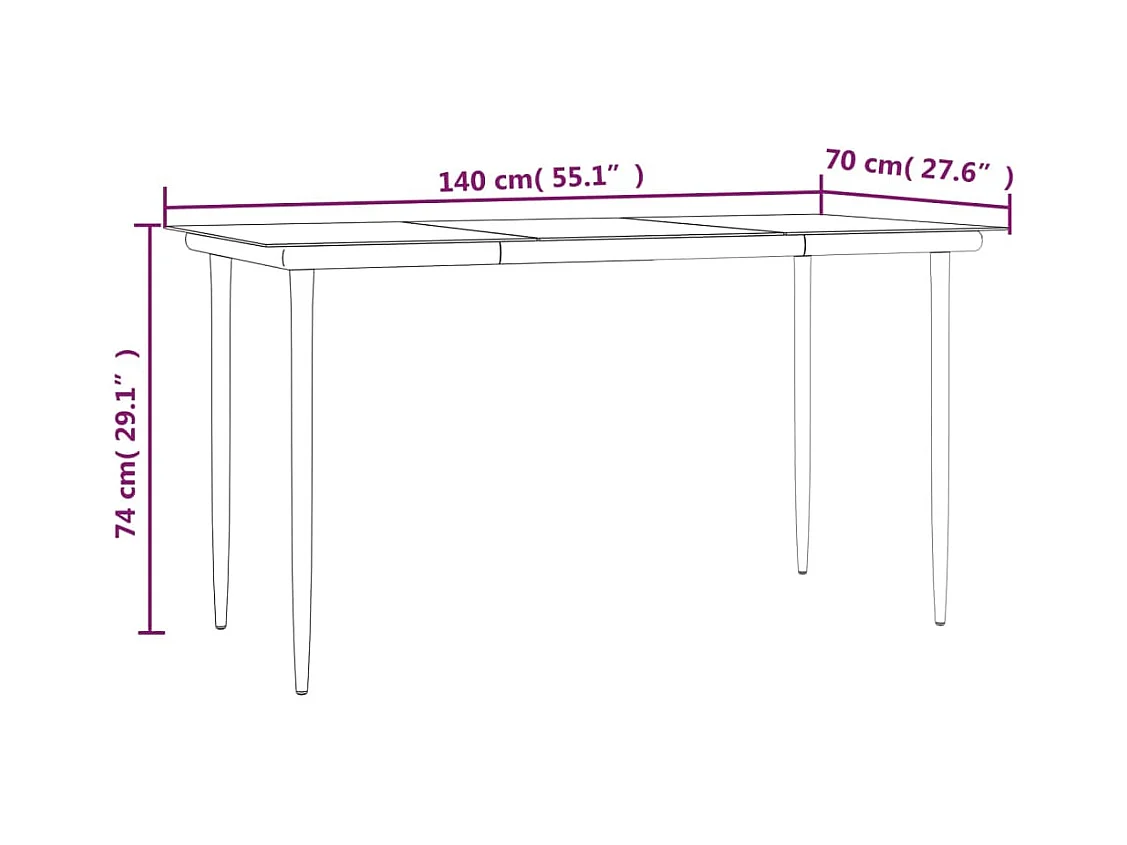 Set di tavolo e sedie da giardino rettangolare in metallo