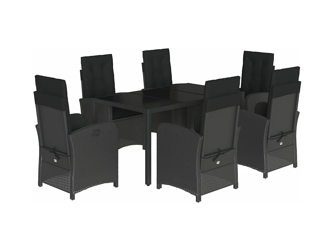 Set da Pranzo da Giardino 7 pz Nero con Cuscini in Polyrattan