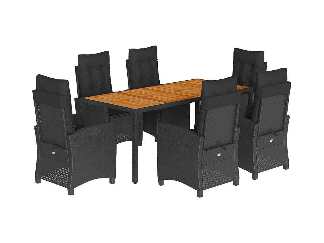 Set da Pranzo da Giardino 7 pz Nero con Cuscini in Polyrattan