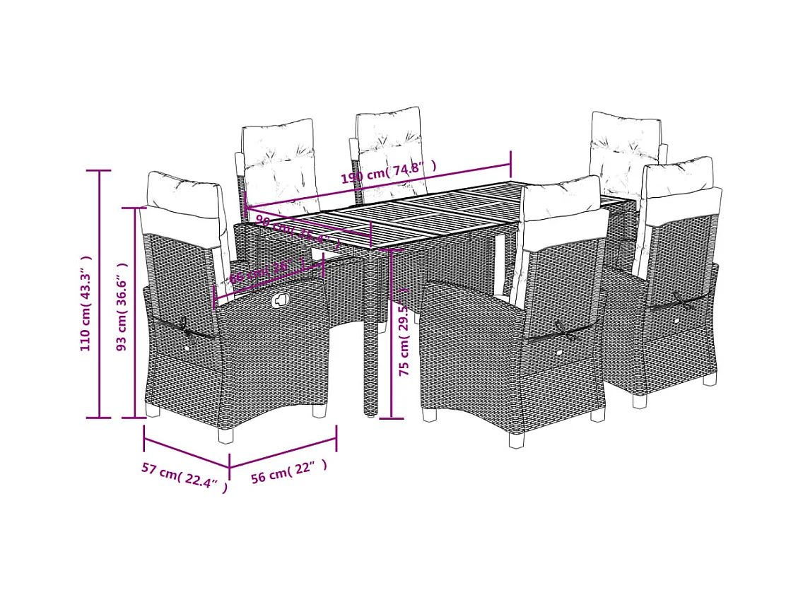 Set da Pranzo per Giardino con cuscino 7 pcs Nero Poly Rattan