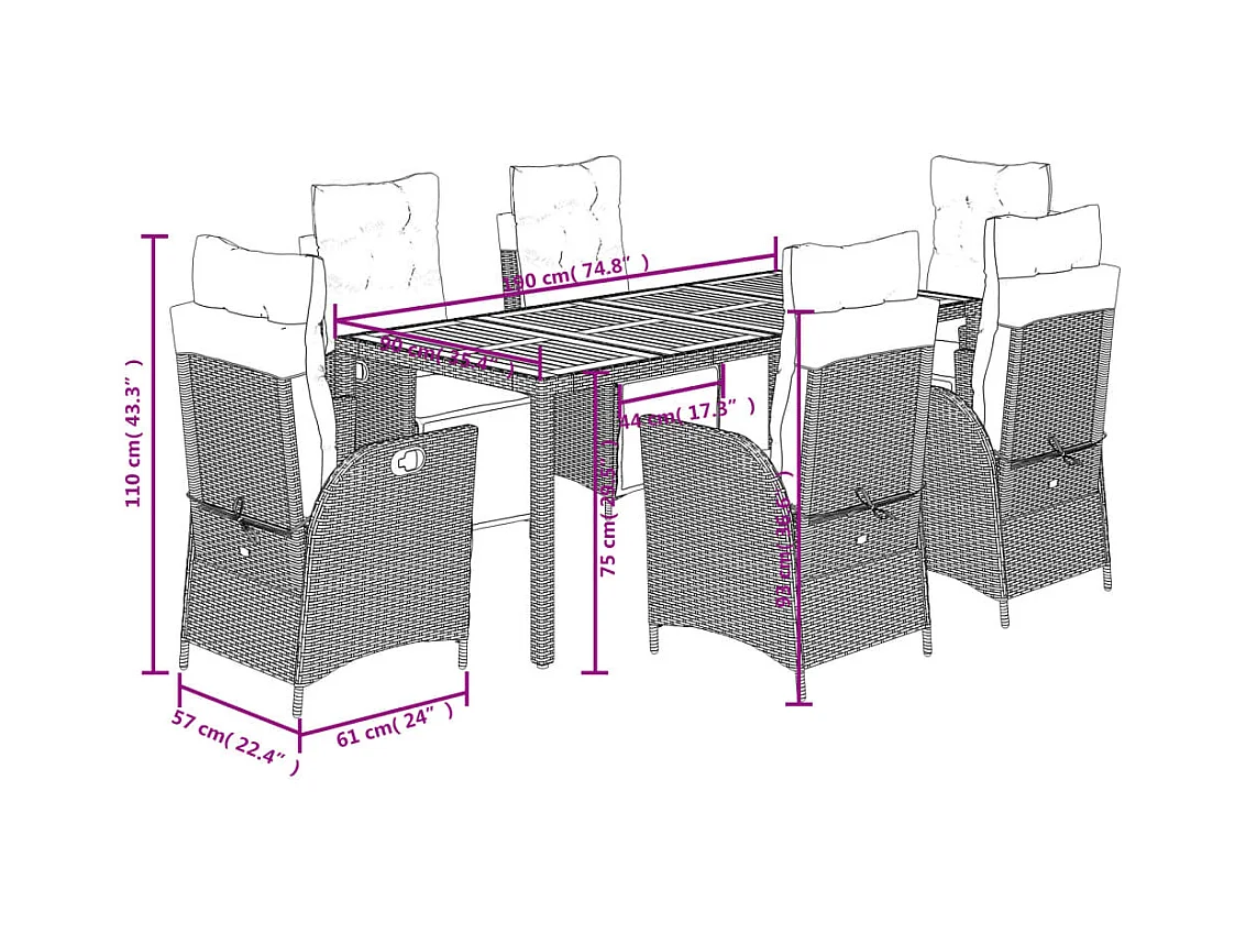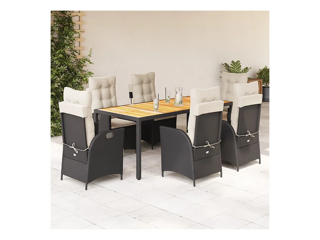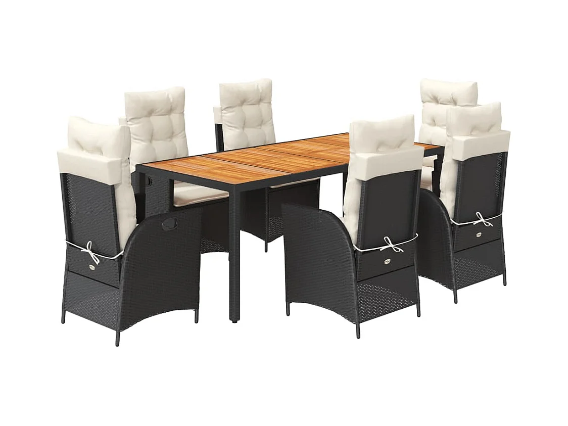 Set da Pranzo da Giardino 7 pz Nero con Cuscini in Polyrattan