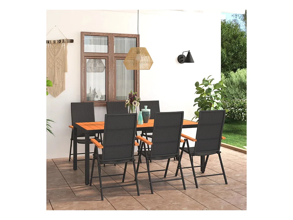 Set da Pranzo da Giardino 7 pz Nero e Marrone