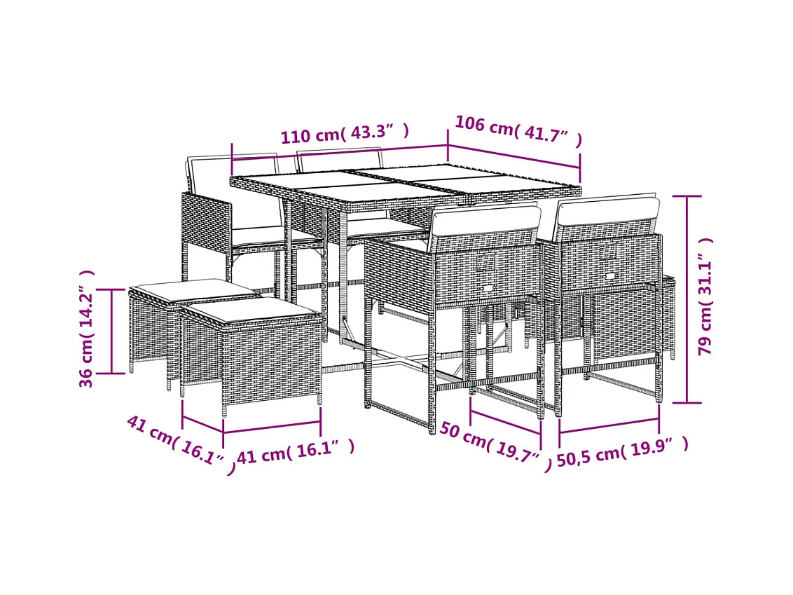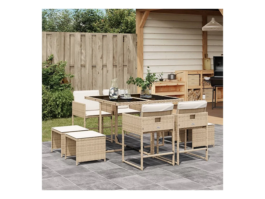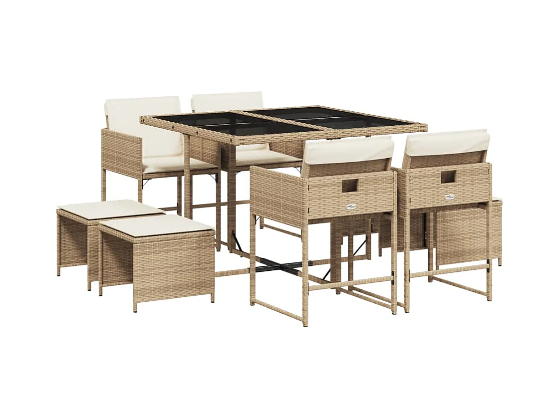 Set da Pranzo da Giardino 9 pz con Cuscini Beige in Polyrattan