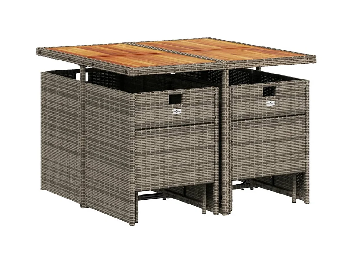 Set Pranzo da Giardino 9pz con Cuscini Grigio Chiaro Polyrattan