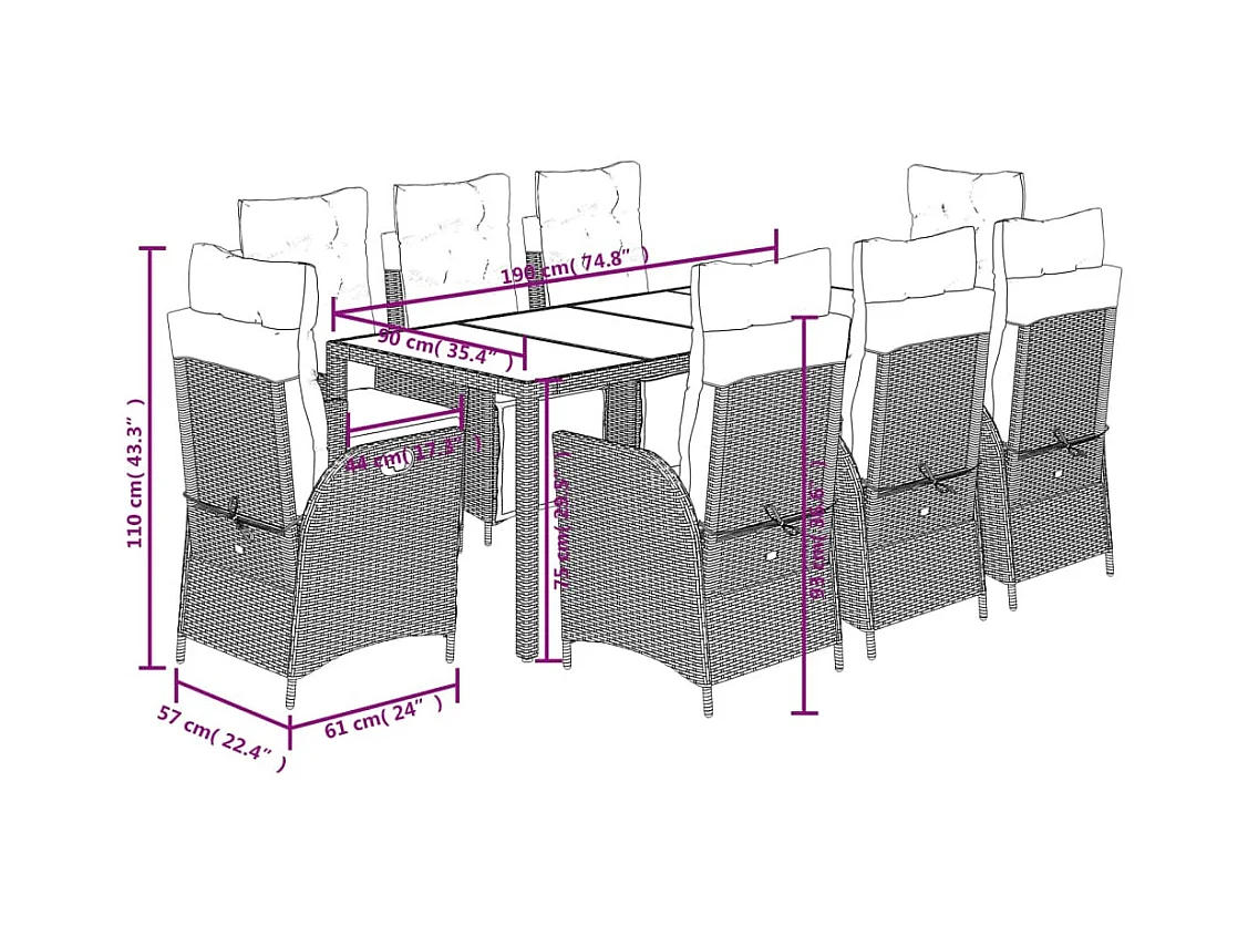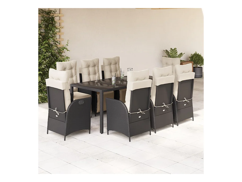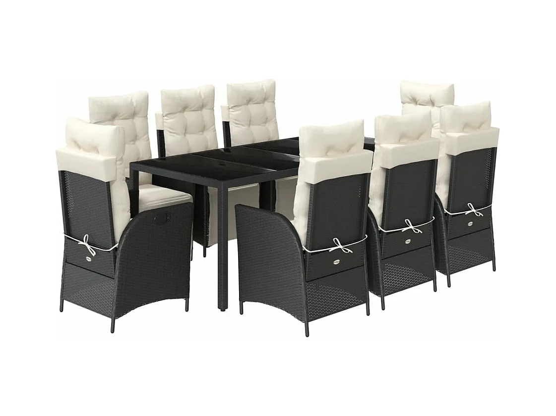 Set da Pranzo da Giardino 9 pz con Cuscini Nero in Polyrattan