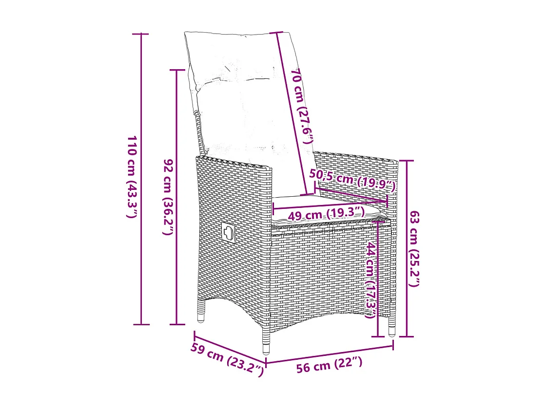 Set da Bistrò 3 pz con Cuscini Nero in Polyrattan