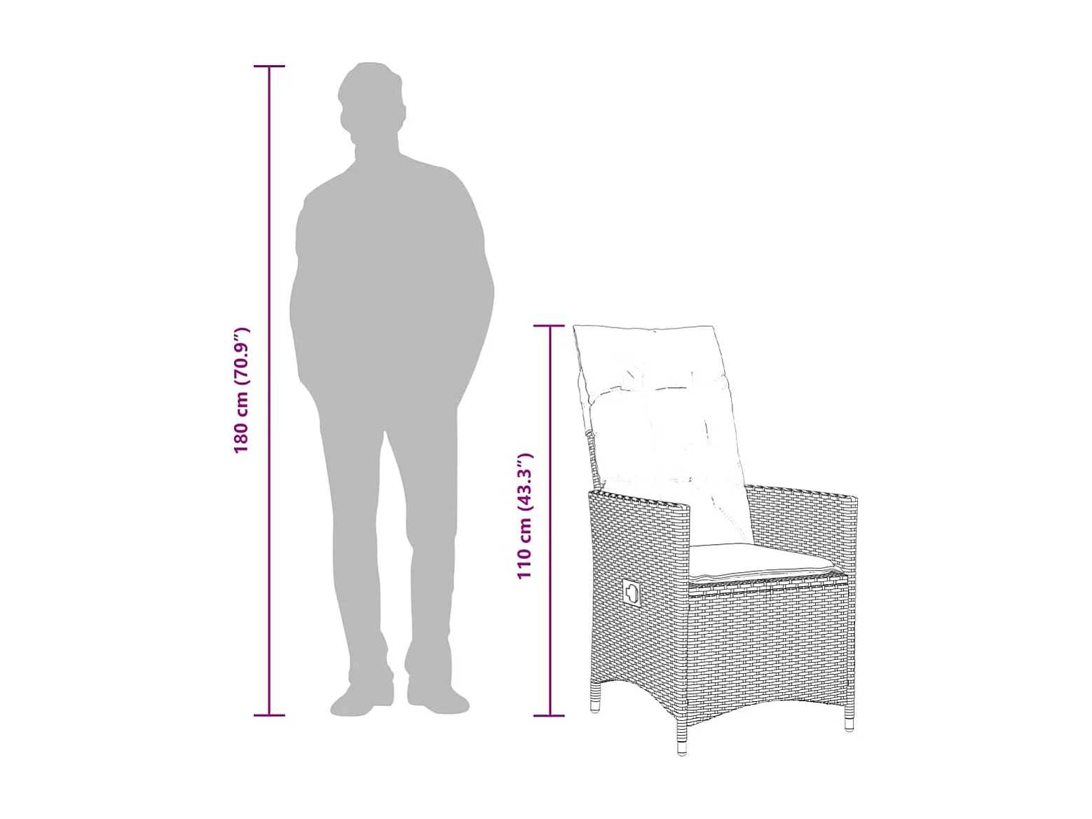 Set da Pranzo da Giardino 9 pz con Cuscini Nero in Polyrattan