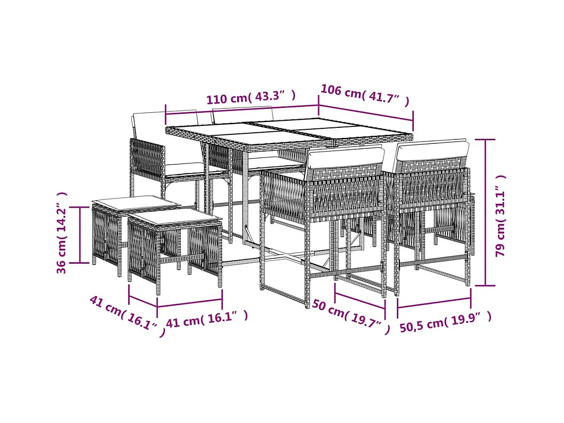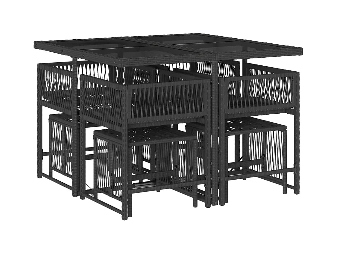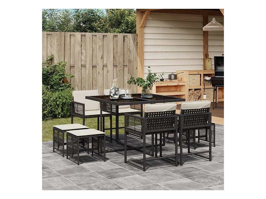 Set da Pranzo da Giardino 9 pz con Cuscini Nero in Polyrattan
